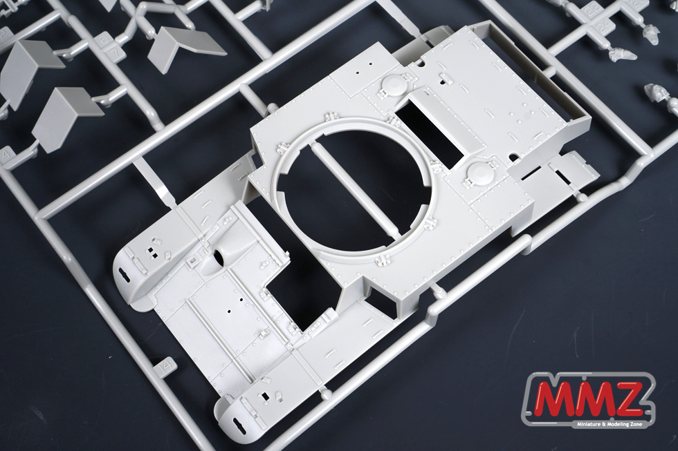 상부헐, 포탑 그리고 인형이 한 런너에 포함되어 있습니다. 간단한 구성으로 디테일을 잘 살려내고 있습니다.