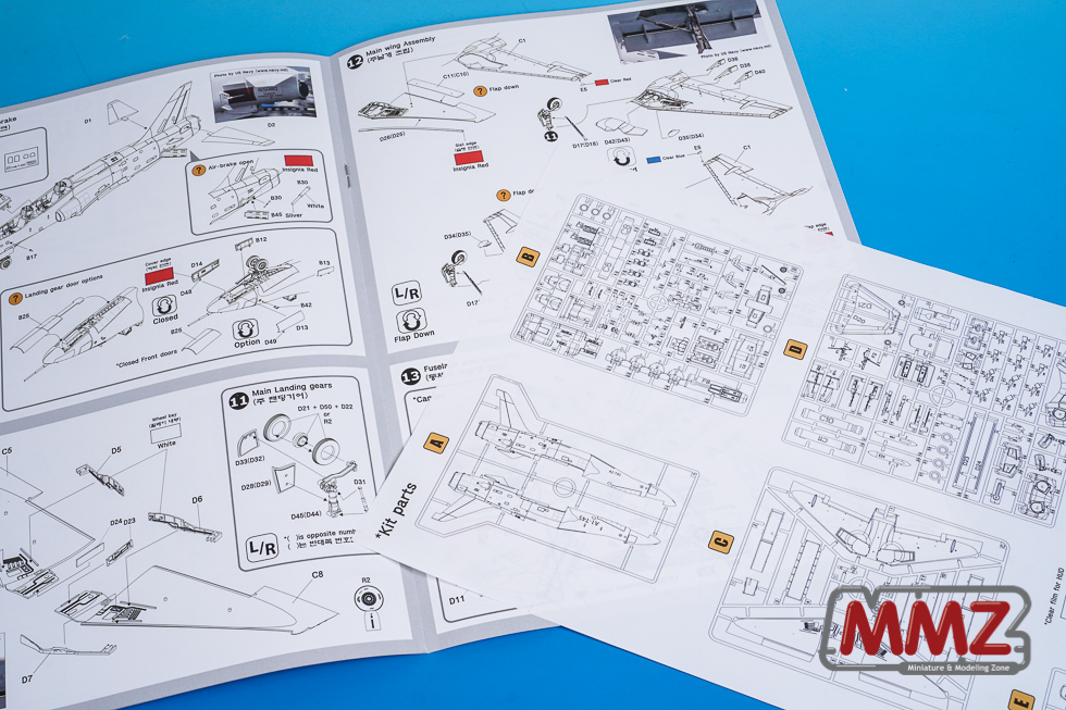 새롭게 제작된 박스를 열어보면 사출물과 데칼, 에칭, 마스킹이 포장된 비닐, 컬러로 인쇄된 설명서가 보입니다.