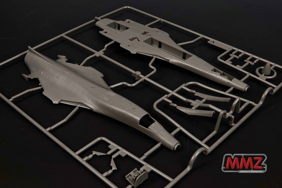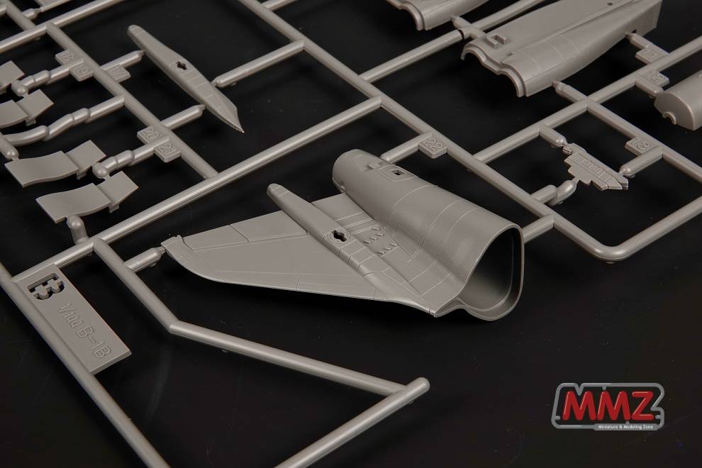 신제품은 B-1B 랜서는 출시전 선행 발매되는데 아마도 국내에서는 흔치 않은 일입니다. 동체 상부 런너를 보면 여러 곳에 슬라이드 금형을 적용, 조립 편의성을 높혔음을 알 수 있습니다. 조립전의 런너 상태임에도 아름다운 곡선을 가진 랜서의 모습이 충분히 보입니다.