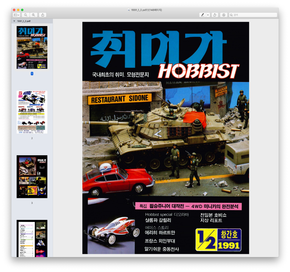 1991년 창간 1호를 시작으로 1999년 폐간될 때까지 총 100권이 발행되었던 한국 스케일 모형계의 시작이자 현재의 모델러들을 만들어낸 인큐베이터였던 취미가가 전자책 형태로 재 출시되었습니다.