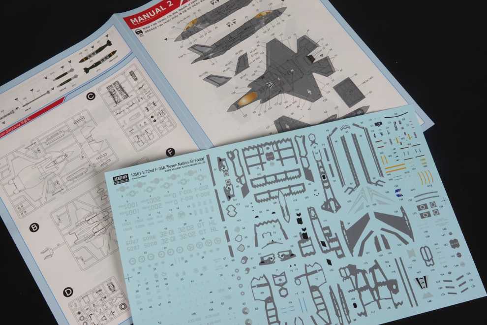아카데미는 1/72 MCP F-35A에 대한민국 공군을 비롯한 7개국 데칼을 넣은 특별판을 발매합니다. 키트는 변함이 없으며 7개국 F-35A 사용국 데칼은 국내 인쇄입니다. 1/72 한국 공군형 F-35A를 제작하신다면 좋은 선택이 될 것 같습니다.