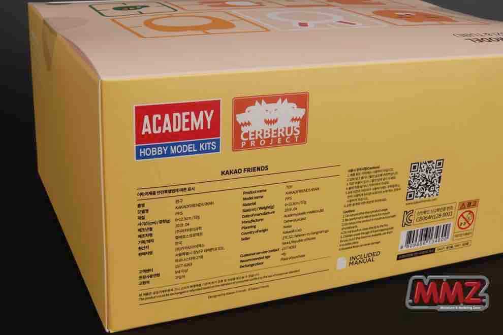 이번 카카오 프렌즈 라이온 프라모델은 국내의 굴지의 원형제작사인 '켈베로스 프로젝트'가 카카오프렌즈의 IP를 가진 카카오IX과 함께 기획/제작한 것으로 아카데미에서 금형 제작과 생산을 담당했습니다. 박스 디자인은 카카오IX에서 디자인한 것으로 프라모델 상품의 패키지로는 다소 이색적인데 카카오 프렌즈샵의 다른 상품과 함께 진열하기 위해 통일감을 부여한 것 같습니다.