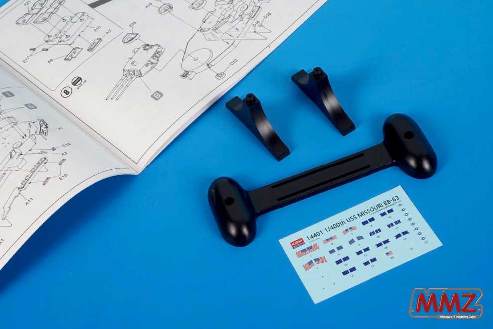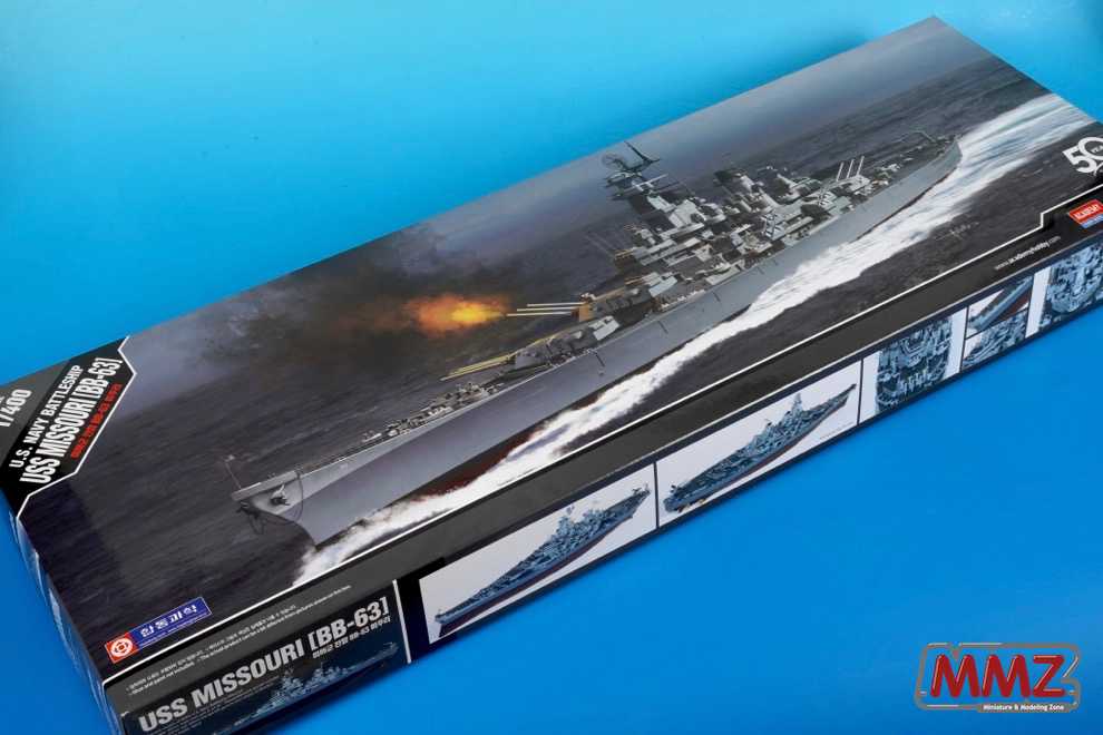 아카데미는 합동과학 1/400 미해군항모 미조리를 재포장해 발매했습니다. 이 제품은 90년대 말에 발매된 합동과학의 오리지널 금형 제품으로 오래된 제품이지만 준수한 품질을 가지고 있습니다.