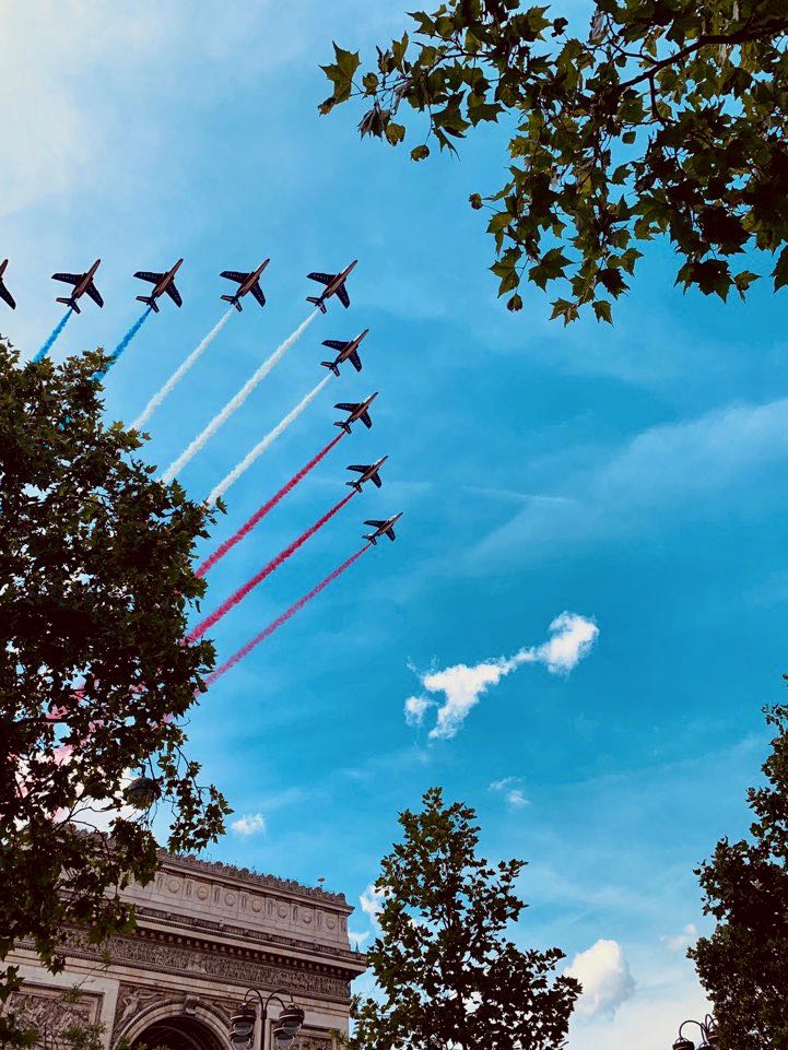 이 사진은 개선문 상공을 날고 있는 프랑스 곡예 비행팀 "트르이유·드·프랑스"입니다. 이 사진은 혁명기념일 하루전 연습 비행을 할 때 촬영했습니다.