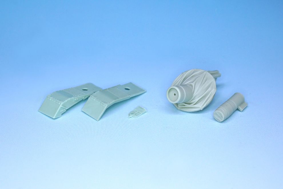 국내에서는 출시 한정으로 아카데미 4호전차의 전면 휀더가 들어있는 제품 또한 발매 예정입니다. 구성품 중 좌측 3개의 부품이 한정판에 포함되는 휀더 부품이며 포신 가동축의 방수포와 포신 커버 두개 부품으로 구성되어 있습니다.