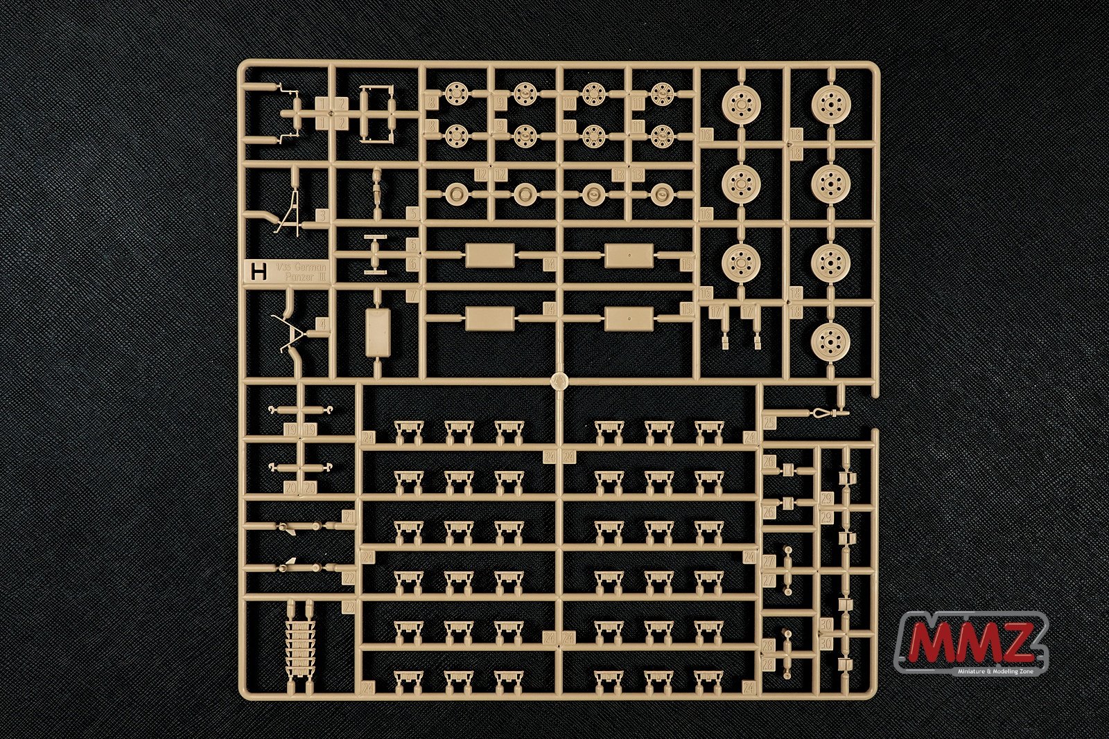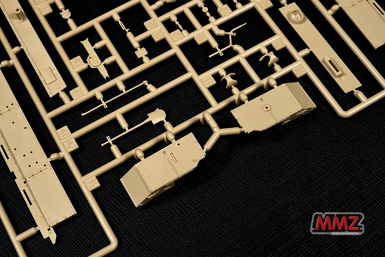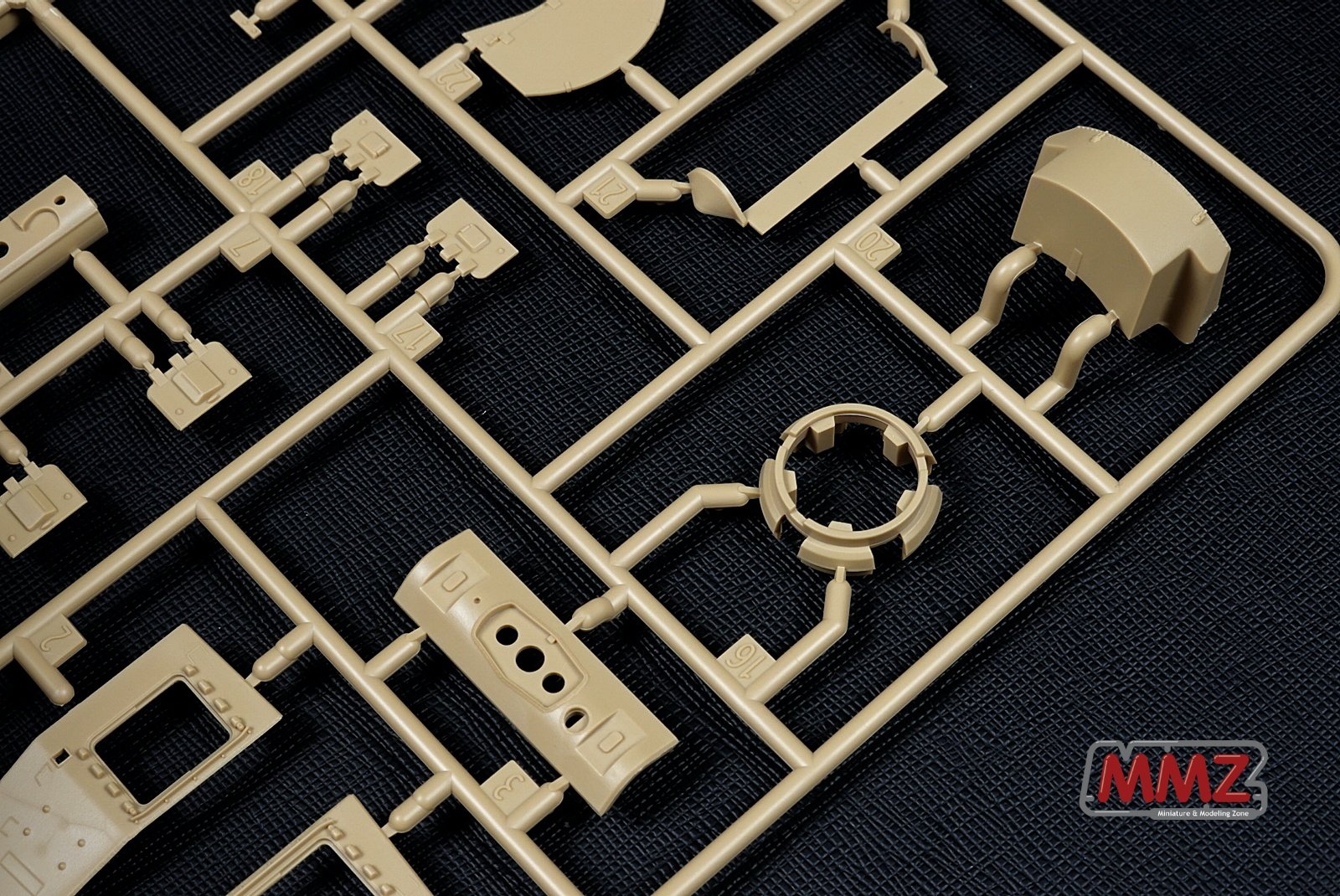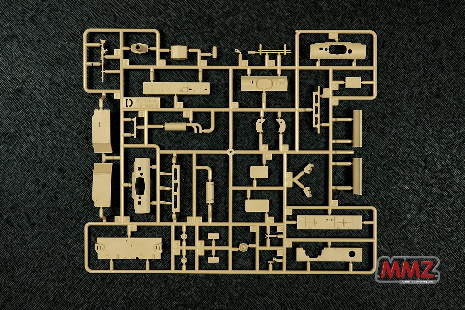 이 런너는 차체 상부 구조물, 전면, 측면 장갑, 측면 펜더, 전방 펜더, 엔진 그릴부 그리고 ovm 부품으로 구성되어 있습니다.