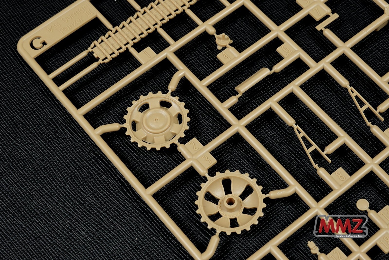 이 런너에는 부품이 매우 많이 보이지만 J형에서 사용하는 부품은 일부고 대부분의 불필요 부품입니다. 사실 이 키트는 J뿐 아니라 L, M, N형을 제작하기 위한 모든 부품이 포함되어 있습니다. 데칼만 변경하여 바리에이션 키트를 발매할 수 있고 모델러는 별로 데칼을 이용하고 설명서가 없다는 점을 극복하면 모든 형식을 만들 수 있습니다. 또한 눈썰미라 있는 분들은 감을 잡으셨겠지만 돌격포 부품도 섞여 있습니다.