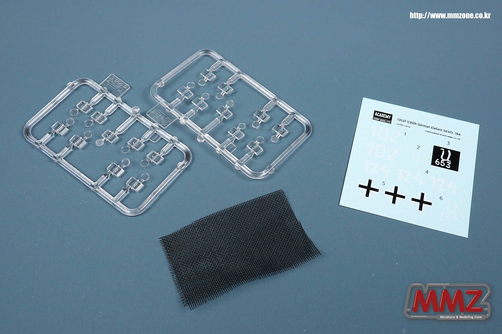 매쉬와 페리스코프 투명 부품 그리고 아카데미에서 인쇄한 데칼이 포함되어 있습니다.