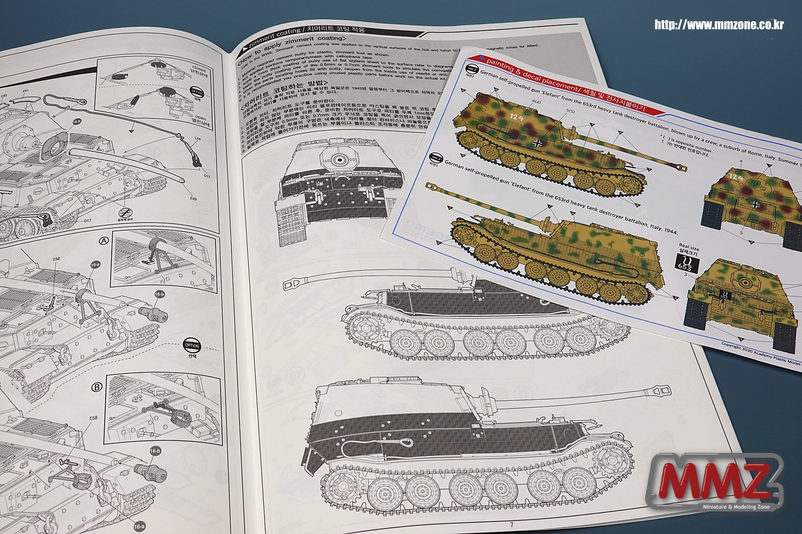 아카데미에서 재 편집한 설명서와 도색 가이드가 들어 있습니다. 원래 원 키트에는 찌메리트 데칼이 포함되어 있습니다만 이 키트에는 포함되어 있지 않습니다. 설명서에 찌메릿 위치만 표시되어 있습니다.