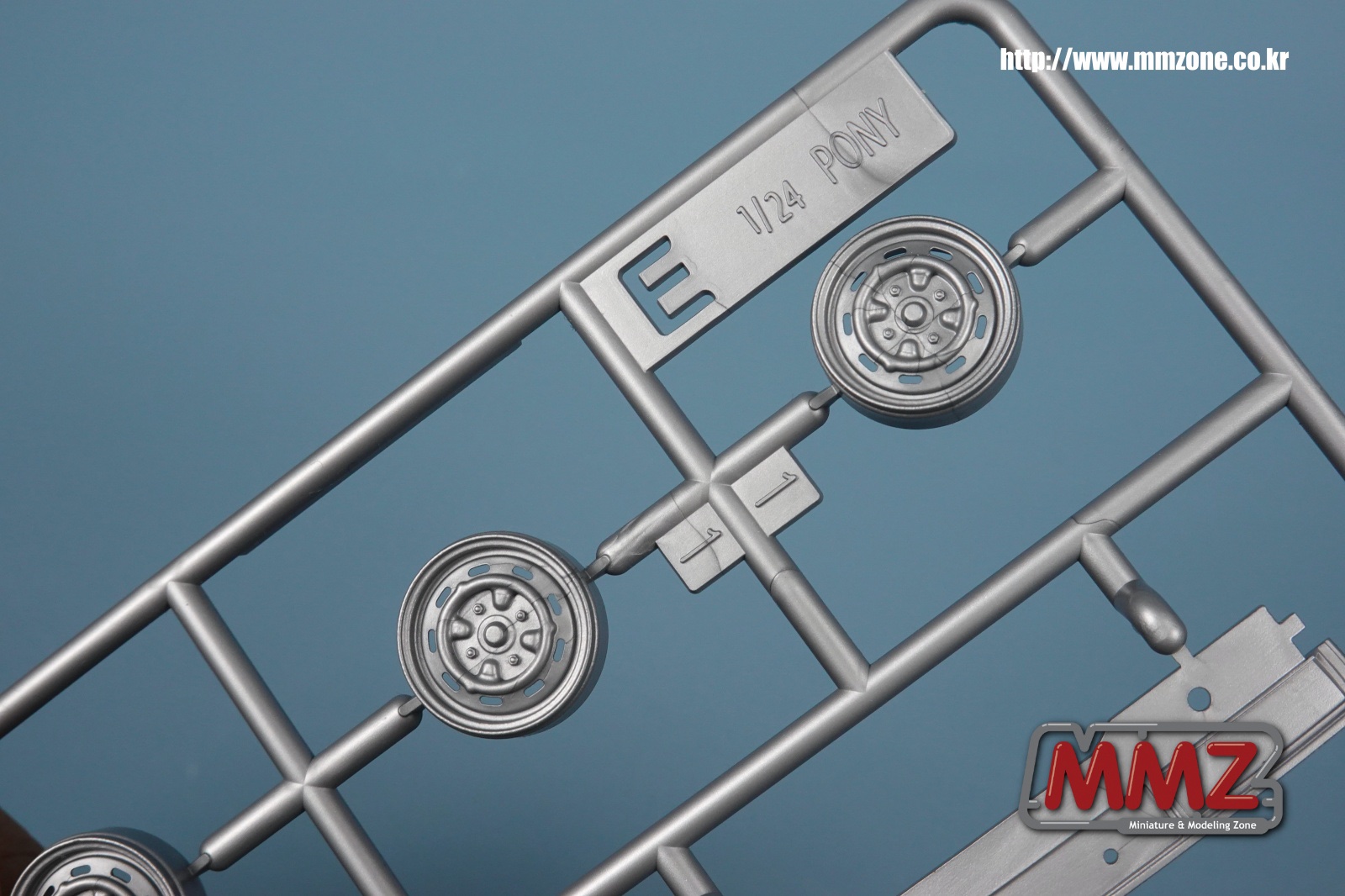 E 런너는 두 가지 종류의 휠과 앞뒤 범퍼, 전면 그릴등 크롬 색상의 부품들입니다. 이 부품이 최종 제품에는 크롬 맥기로 들어갑니다.