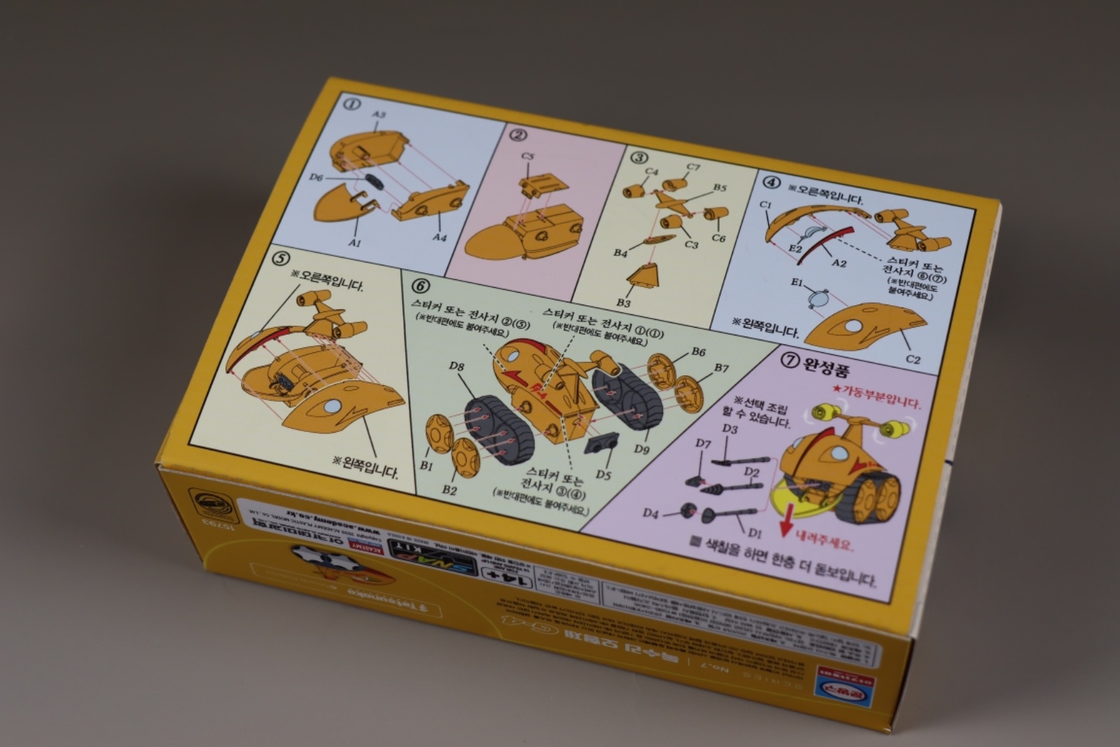 재품의 팩키지를 보면 G-1부터 G-4까지 네개의 비클이 한 개의 상자에 담겨 있는데 상당히 레트로하죠. 마치 7-80년대 문방구에서 팔았을 것 같은 레트로한 감성을 담고 있습니다. 특히 재미있었던 점은 바로 상자 뒷편에 그려진 설명서인데 옛날 문방구에서 용돈 좀 썼던 아저씨들은 추억 돋는 부분이죠.