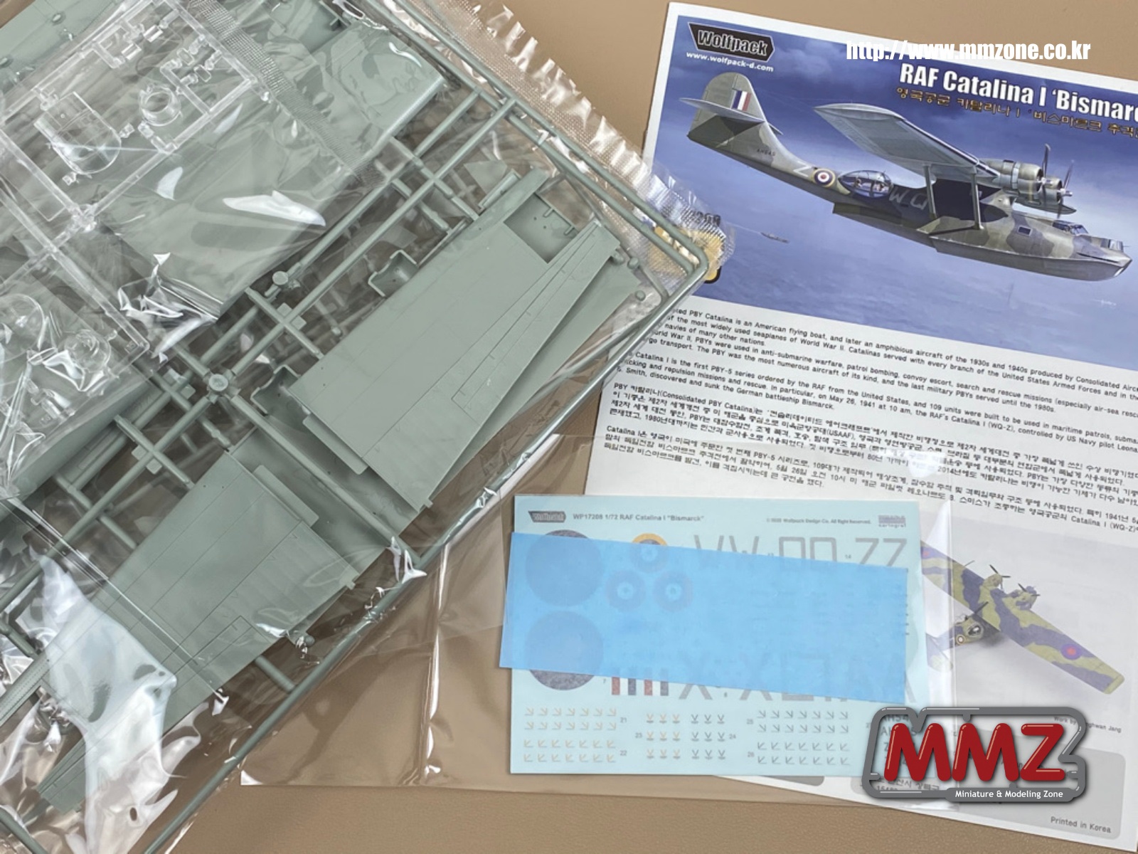 키트의 내용물은 과거 울프팩에서 발매한 WP17204 1/72 PBY-5 Catalina 'Pacific Theater'와 같이 아카데미사의 사출물로 과거 아카데미제 카탈리나 키트들은 전부 미 해군 마킹으로 발매가 되었기 때문에 영국군 마킹은 다소 신선하게 느껴집니다. 키트는 PBY-5의 사출물을 이용하기 때문에 이에 맞는 영국공군이 구입한 카탈리나 I을 재현하고 있습니다.
