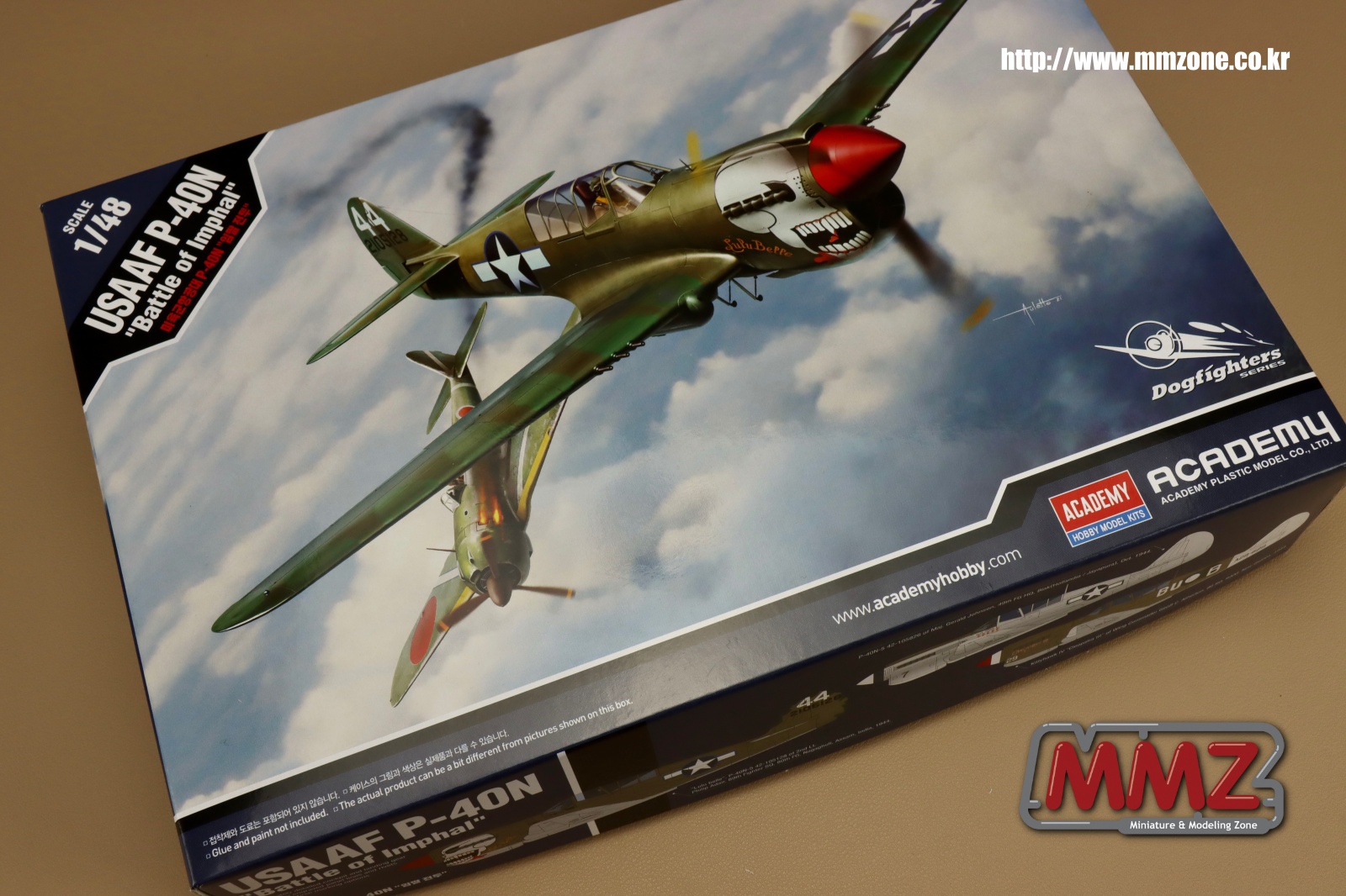 오늘 소개해 드릴 것은 지금은 없어진 회사인 일본 M사의 커티스 P-40N을 아카데미에서 재포장한 제품입니다. 원 회사의 제품들은 비교적 싸면서 품질이 괜찮았던 것으로 기억되는데 이 제품은 1995년 제품이니까 거의 20년이 훌쩍 넘은 제품입니다.
