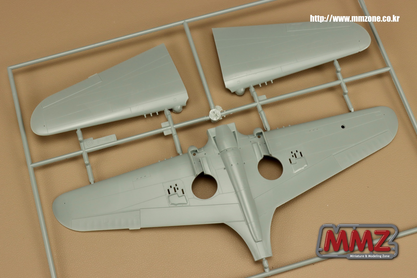 제품 구성은 48 스케일 비행기의 표준적인 분할을 보여주고 있습니다. 패널 라인이 무척 날카롭지만 다소 약해 보이기 때문에 도색시에는 살짝 그어 주는 것도 좋을것 같습니다.