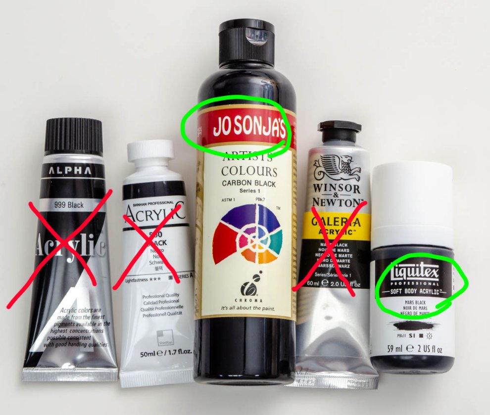 소프트 바디 아크릴 물감, 그 중에서도 입자가 고른 조선자 제품을 추천하며,