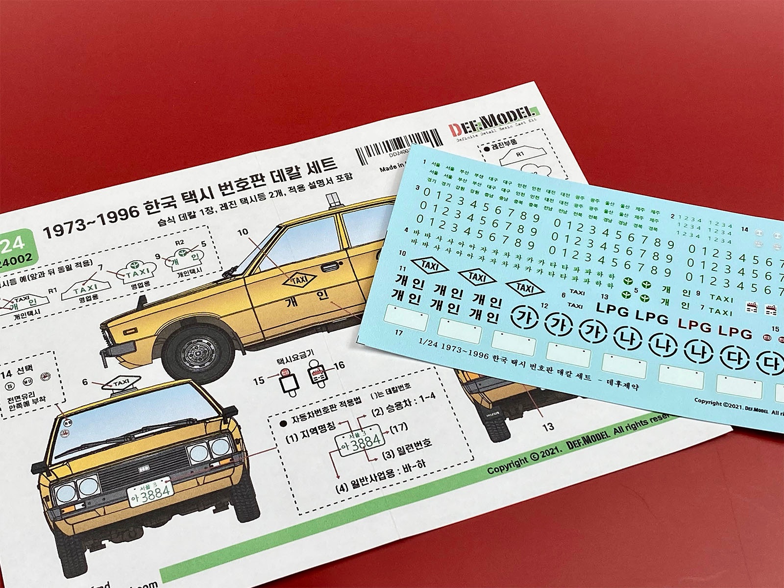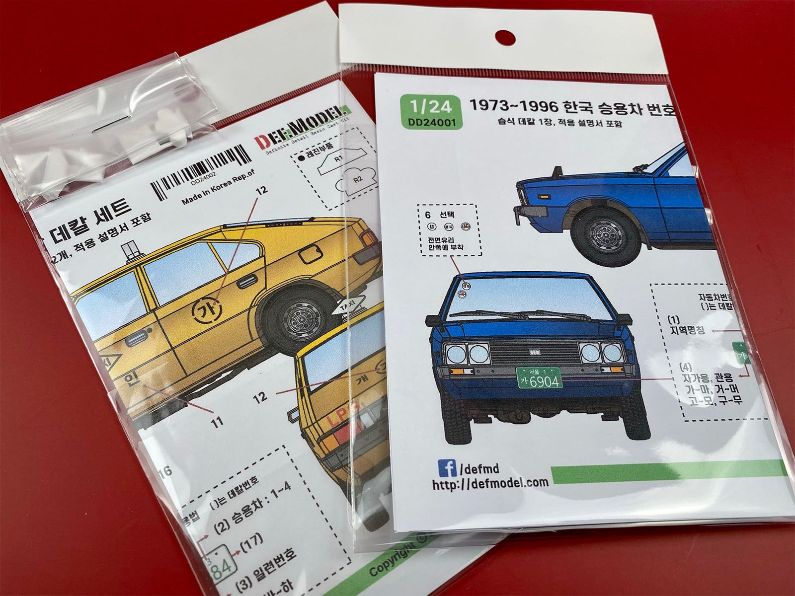 DEF Model은 최근 발매된 1/24 스케일 아카데미 포니 택시와 이전에 발매된 승용차 버전을 위한 번호판 데칼 세트를 발매했습니다.