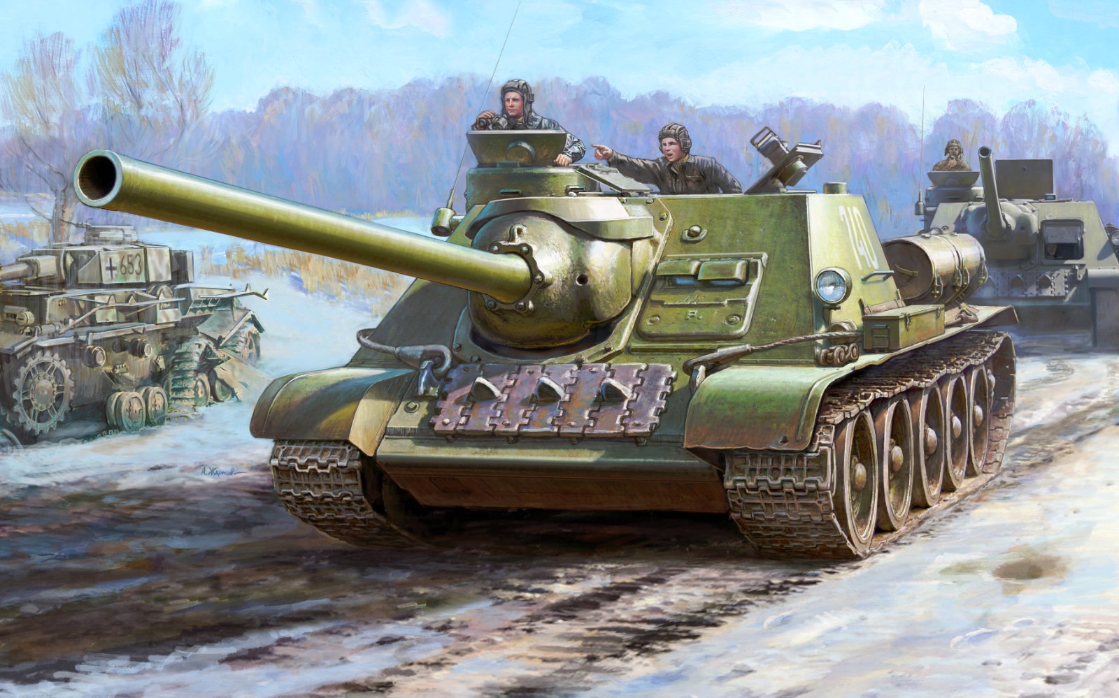 아카데미는 4호전차 E형과 같이 러시아 대전자 자주포인 SU-100을 재포장 발매합니다.