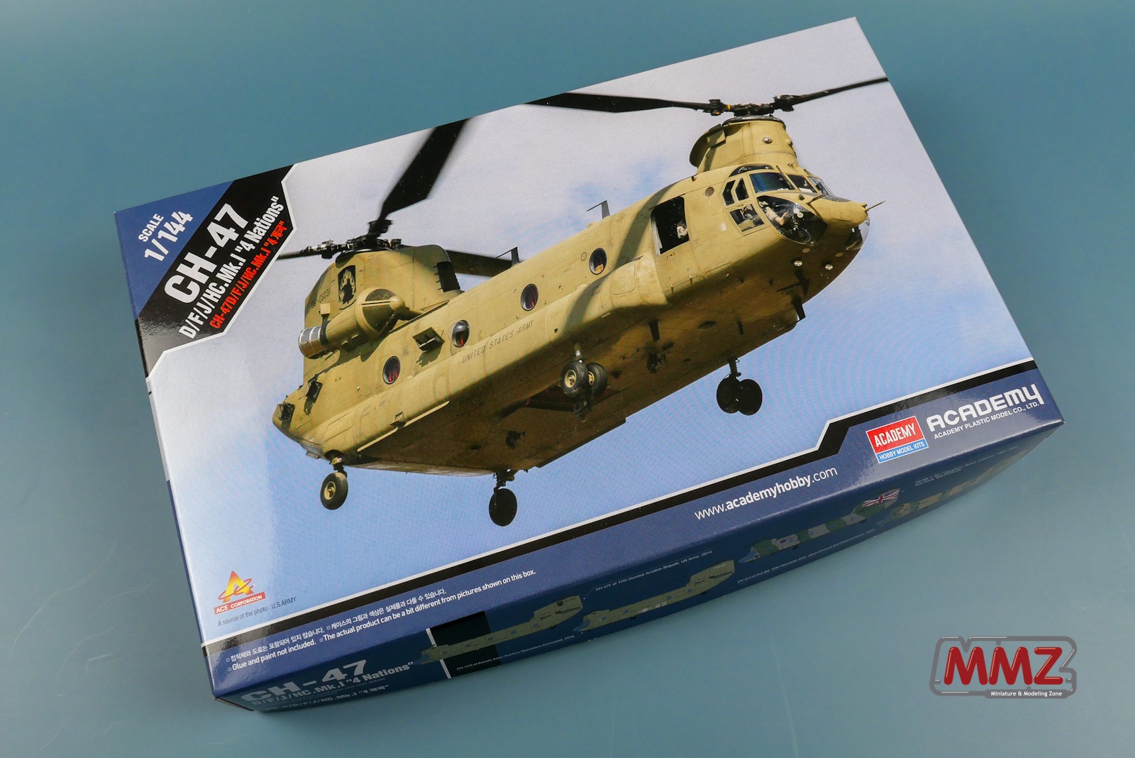 아카데미는 에이스 금형의 1/144 스케일 CH-47을 재포장 발매합니다.