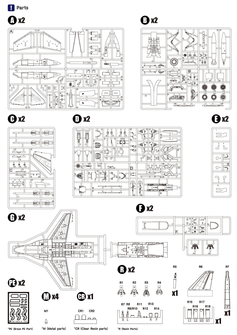 이 키트는 특이하게 한 박스에 2대가 든 2 Kit in Box로 구성되어 있는데 T-X 프로그램의 요구사양에 맞게 두 대가 제작된 T-50A를 재현하기 위해 TX-1, TX-2 각 1기씩 들어있습니다.