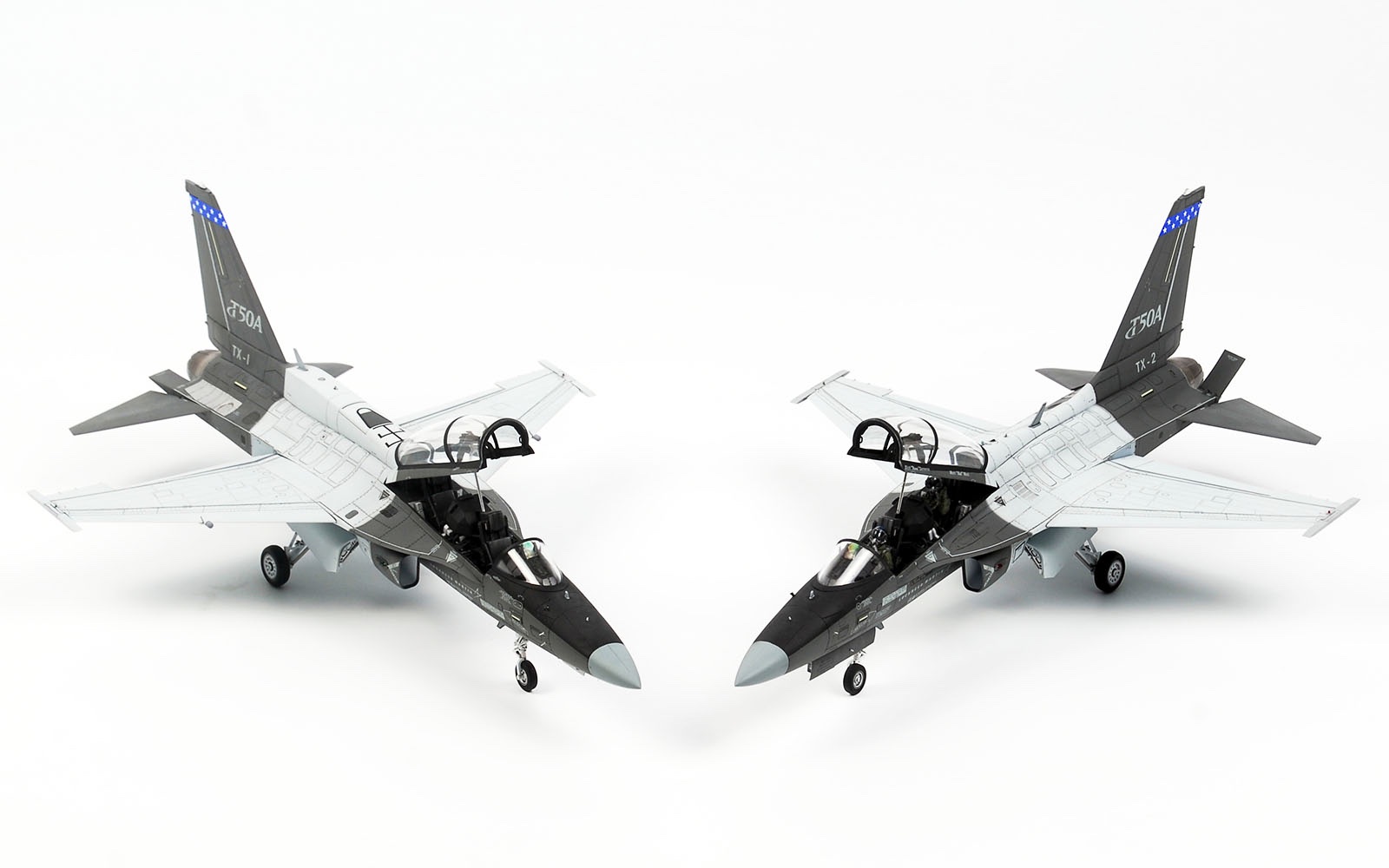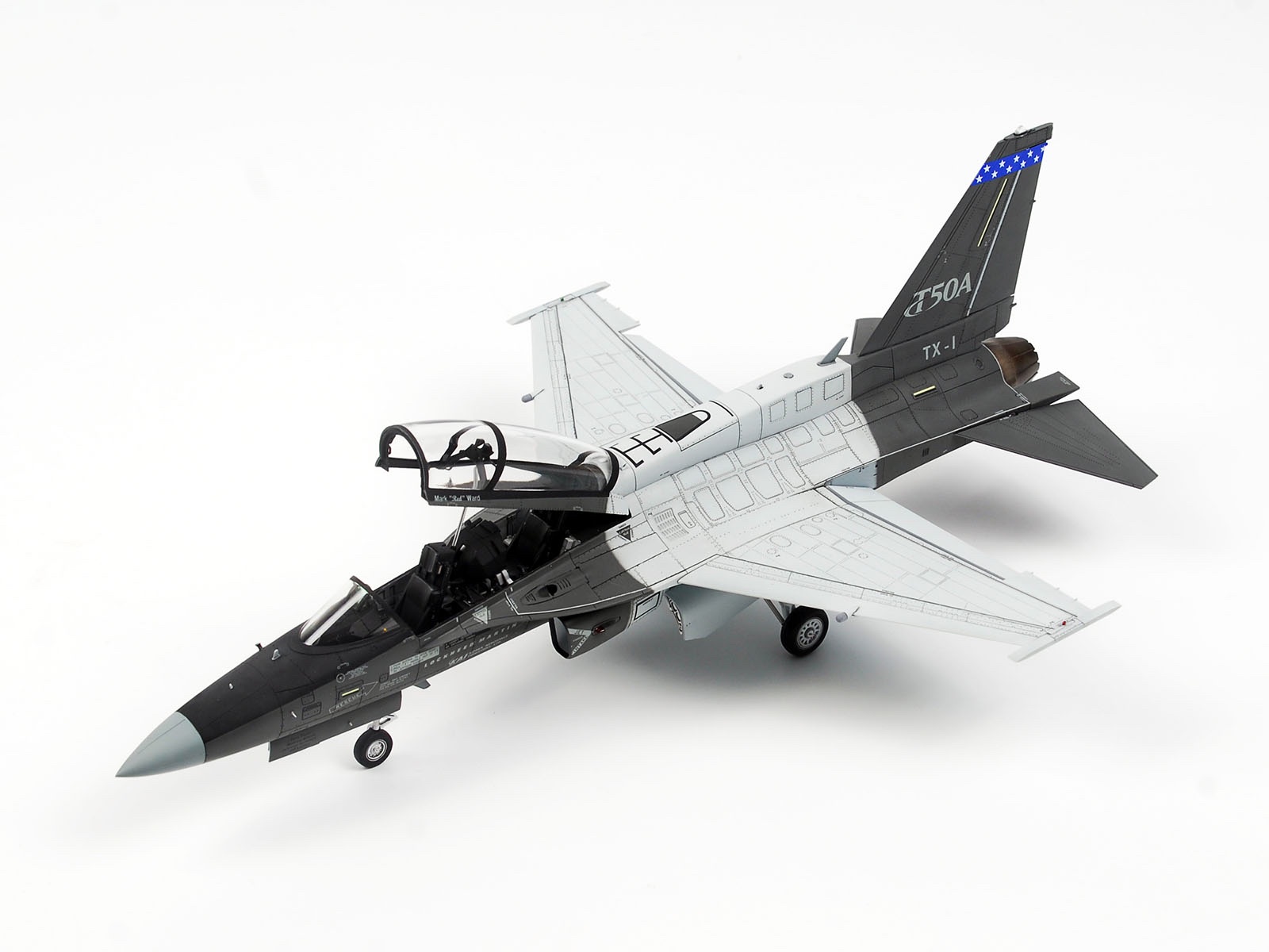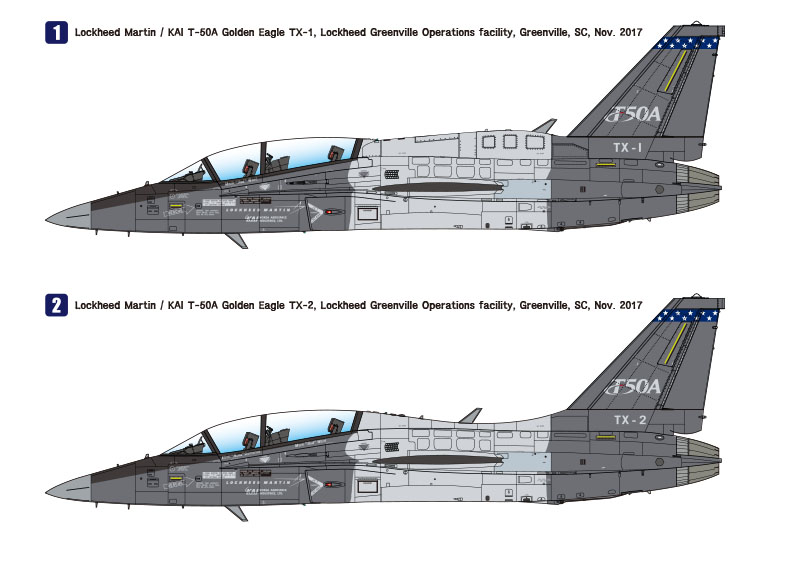 이 키트에선 T-50 골든이글을 베이스로 F-35와 같은 5세대 전술기에 맞쳐 대형 일체형 디스플레이 계기판, 대형 HUD, Link-16 안테나 외에 T-X 프로그램에 맞춘 공중급유기능이 추가된 험프백 스파인을 장착한 버젼도 재현했습니다.