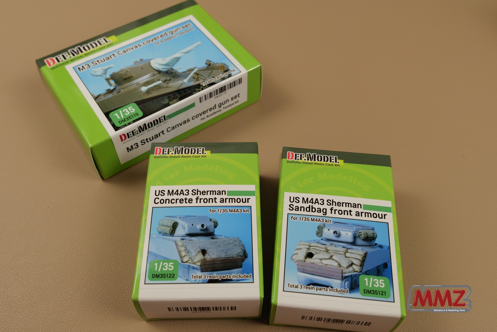 DEF Model은 M4A3용 콘크리트 전면 장갑, 샌드백 전면 장갑 키트 그리고 M3 스튜어트용 캔바스 커버 세트를 발매했습니다.