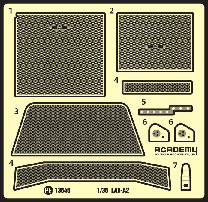 아카데미는 트럼페터 금형의 1/35 USMC LAV-A2 8X8를 발매합니다. 키트는 2010년경 발매된 것으로 미해병대 LAV 시리즈의 최종형을 재현하고 있습니다. 키트 설명은 런너 사진으로 대치합니다.