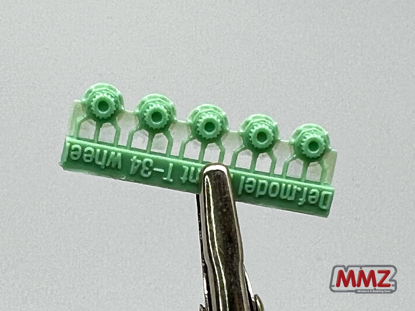 일부 키트들은 타이어와 휠이 분리되어 있어 불에 탄 휠을 만들 수 있지 않을까 생각할 수 있지만 이 특이한 모습 때문에 완전한 구현은 어렵습니다. 특이하게도 T-34 휠의 안쪽은 이런 패턴이 있고 이건 인젝션으로는 구현이 어려워서 별매가 꼭 필요합니다.