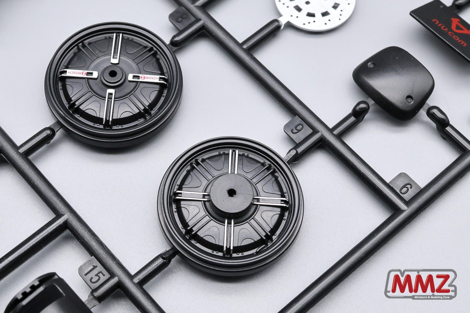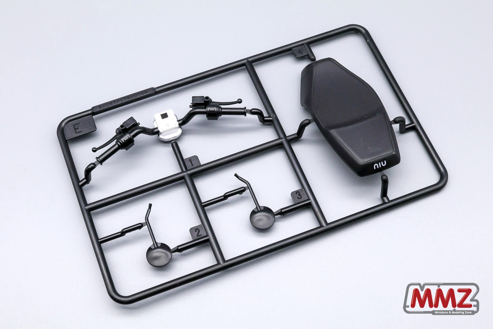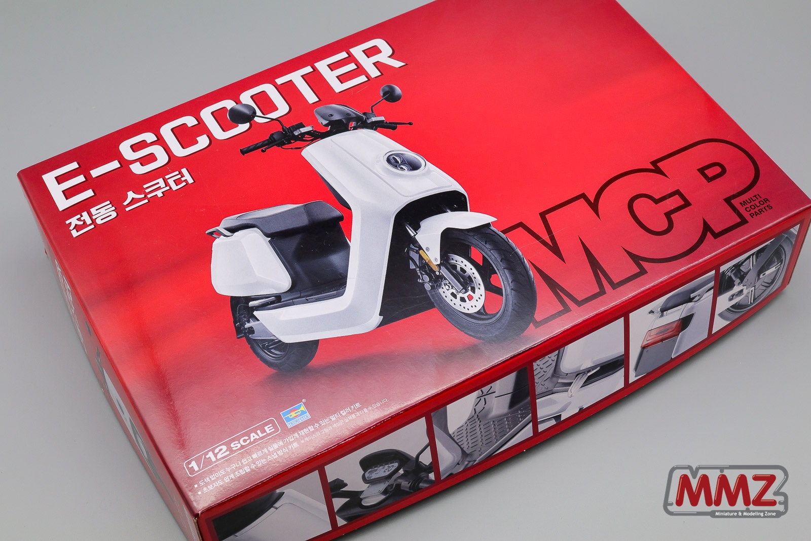 활기차게 트럼페터 재포장을 진행중인 아카데미에서 1/12 전동 수쿠터를 발매했습니다. 상자에 커다랗게 MCP라고 표시되어 있듯이 이 제품은 이미 도색된 상태로 발매되는 제품입니다. 아키데미 MCP가 색상이 같은 부품을 모아 구성한 파츠를 각각 다른 색으로 사출하는 방식과 다르게 이 제품은 파츠 전체 또는 일부를 도색한 형식입니다. 아카데미에서 도색한 상태로 발매되었던 1/48 모터라이즈 전차 시리즈와 비슷한 구성입니다.