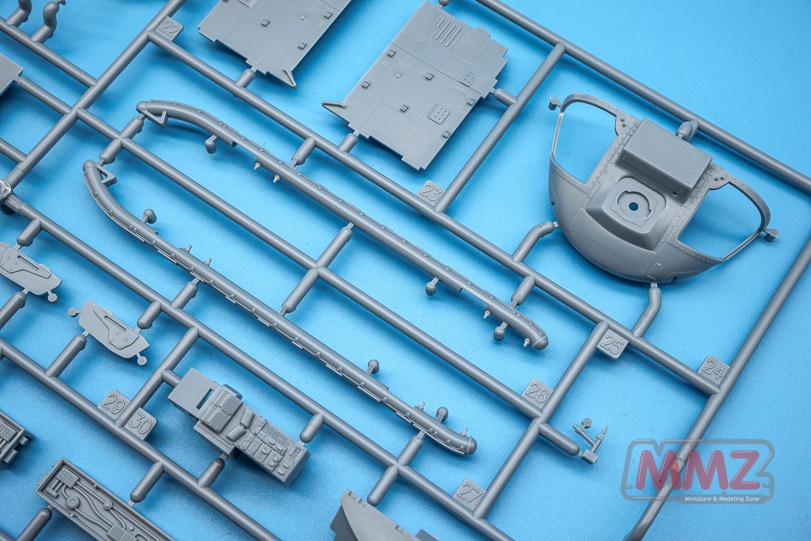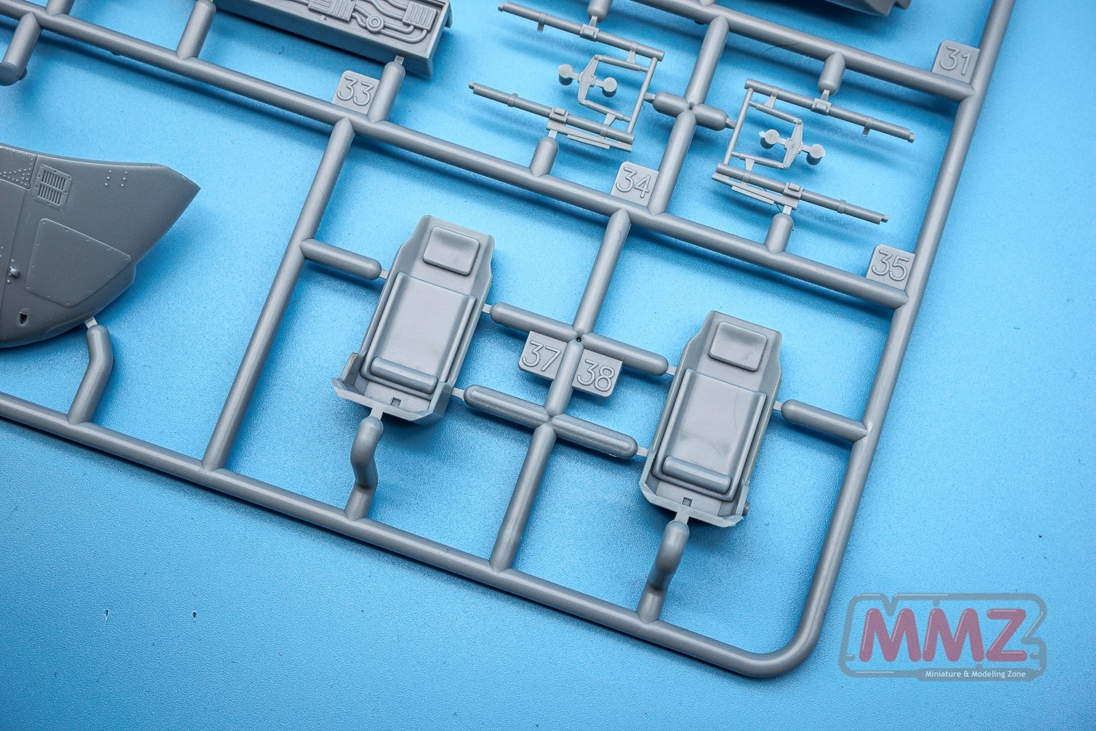 F 파츠는 폴딩 상태의 로터, 후방 도어, 블레이드 폴딩 랙등이 보입니다. 즉, 이 제품은 로터 블레이드를 폴딩한 상태로 제작이 가능합니다.