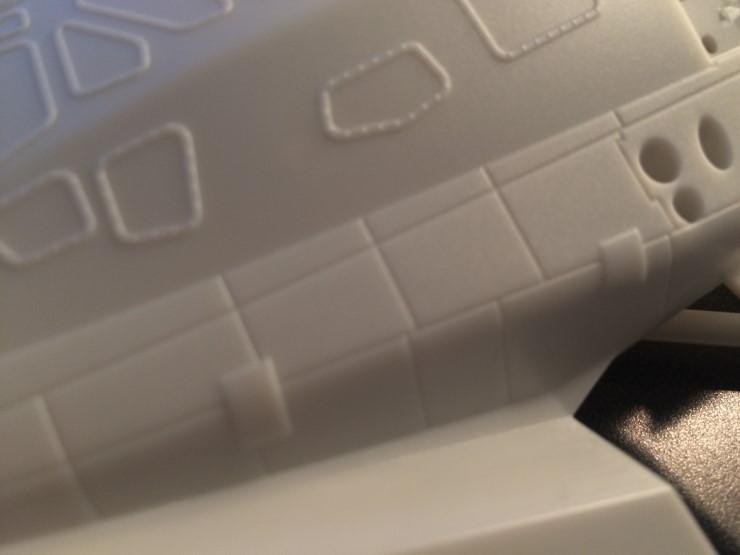 보시다시피 창 테두리나 리벳은 모형처럼 튀어나온 형태가 아닙니다. 패널라인으로 그어놓은 것들은 대부분 단열섬유타일의 이음새입니다. 물론 저런 디테일을 살린다는건 대형업체의 히트작 고급킷이나 되야 생각해볼만 하겠죠. 태생적 한계는 분명합니다.