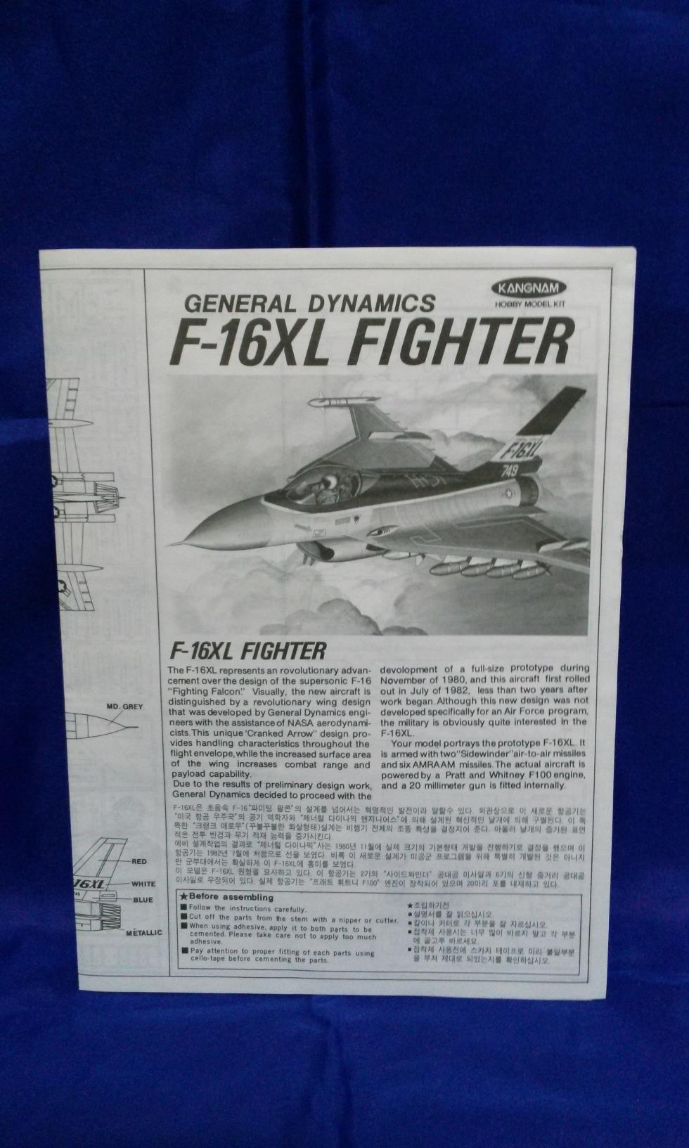 안녕하세요. 좀 마이너한 전투기를 소개해 볼까 합니다. 80, 90년대 당시 1/48이나 1/72 스케일 전투기, 헬기는 자주 만들곤 하였는데요, 1/32 같은 대형 스케일 제품이 잘 없어서 대형 전투기에 대한 갈망 같은게 있었습니다. 그러다 문방구에서 강남모형제 1/32 F16을 보게 되었구, 용돈을 모아 구매하여 만들어본 추억이 있습니다. 지금 기억에도 조립성이 그리 좋은 편이 아니었으나, 한 덩치에 매료되어 아직까지도 인상적인 제품으로 여겨지고 있습니다. 다 제작한 뒤 낚시줄을 활용하여 천장에 메달아 두었는데, 나름 디피효과가 좋았습니다. 지금 소개할 제품은 그 자매품격인 F16XL입니다.