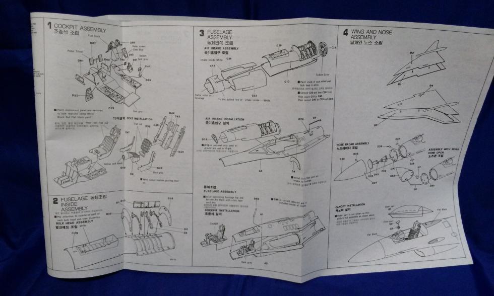 비행기 조립에서 첫 단계인 콕핏 조립이 설명서에서도 1번으로 나와 있습니다. 3번에 있는 공기흡입구의 설치에서 참 애를 많이 먹었는데, 다시 제작을 해 본다면 요즘은 도구도 좋은 게 많고 하니 상대적으로 좀 수월해질 수 있겠단 생각이 듭니다.