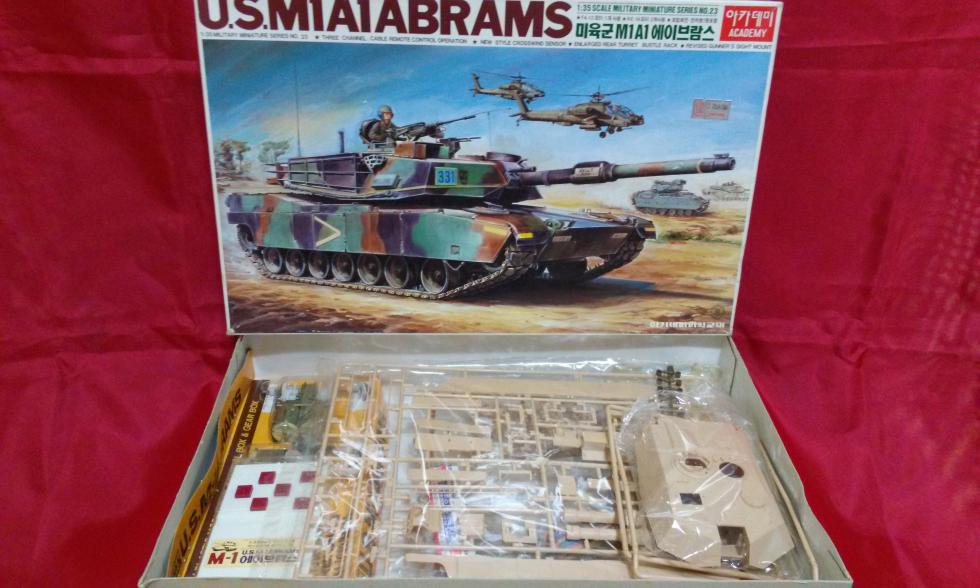5. 박스오픈(2) : 아마 당시 현용전차로서는 최신이 아니지 않나 하는 생각이 드는군요. 아카데미의 레오파드 A4도 최신으로 알고는 있었는데 에이브람스 외에는 국내 모형제품으로는 가장 최신예 전차라고 생각합니다. 아마도 90년대 초에 험비 제품이 출시되어 현용 밀리터리에 대한 폭이 확장될 때 동 전차는 든든한 맏형이 되어주었지요. 에이브람스는 혼자 있는 것 보단 브레들리, 씨-드라곤, 험비, m113 등과 팀을 이뤄 같이 가지고 놀면 상당히 재미있었습니다. 아참 브레들리 등의 제품에 들어 있는 보병세트와 함께 연출을 하면 약방에 감초격으로 아주 그만이었죠.