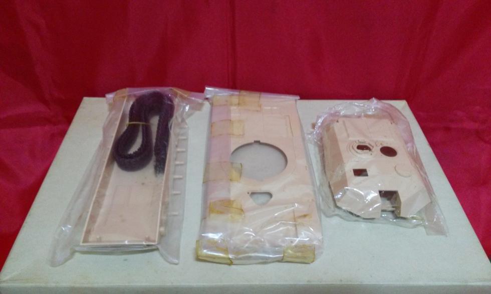 4. 박스오픈 : 러너 색깔이 무엇이라 한마디로 하기 어렵군요. 베이지라고 할지 살색이라고 할지 아니면 살구색이라고 할지 판단이 잘 서질 않습니다. 포탑부분은 러너에서 분리되어 있구 다만 비닐에 싸져있어서 변색 등 훼손은 없는 상태라 다행입니다. 당시를 회상해 보면 집에 가져 올때 생각보다 무거워 헉헉거렸던 점과 집에서 박스오픈을 하며 "스프라이즈!"했던 생각이 드는군요. 제품 색감의 고급스러운 점, 3모터 사용, 처음 시도해보는 사각 리모콘 등은 인상적이었던 것으로서 지금도 제 디엔에이에 각인되어 있는 것 같습니다.