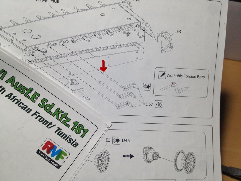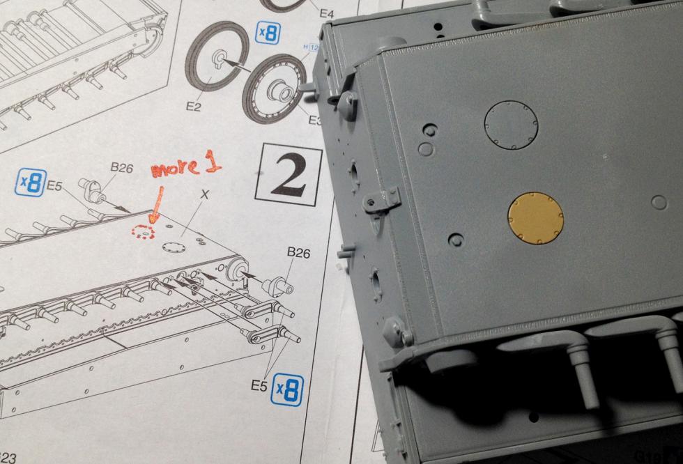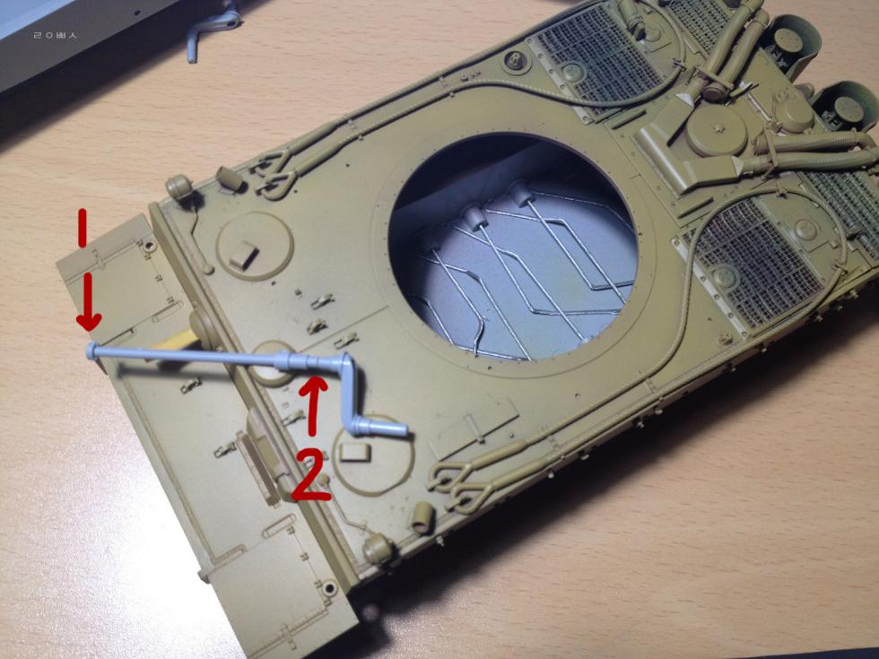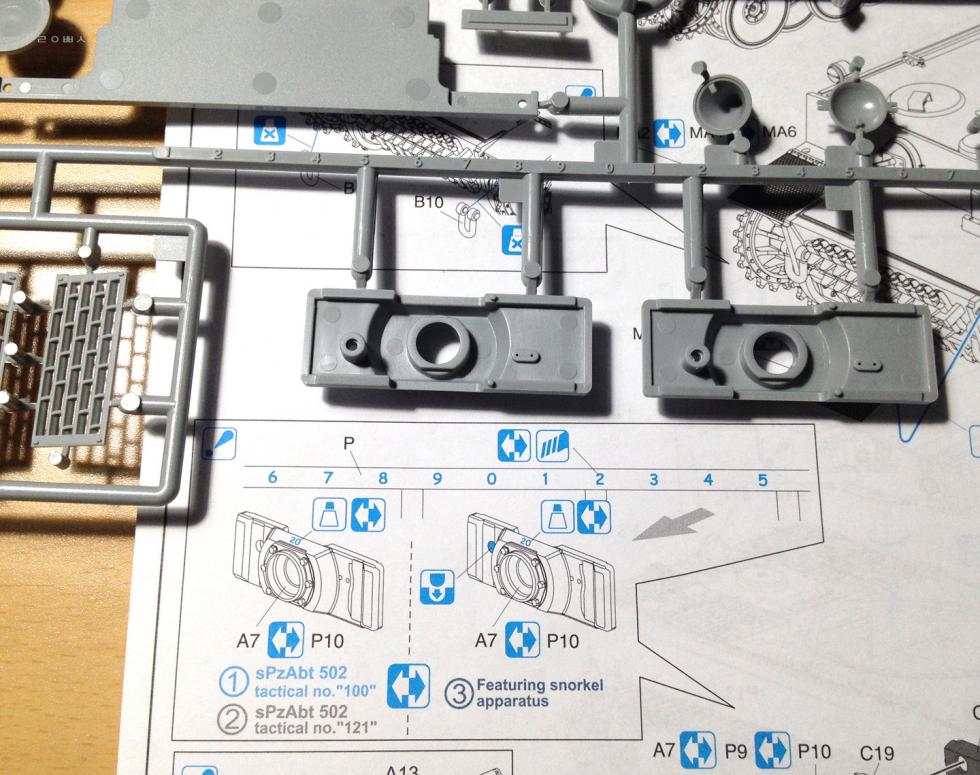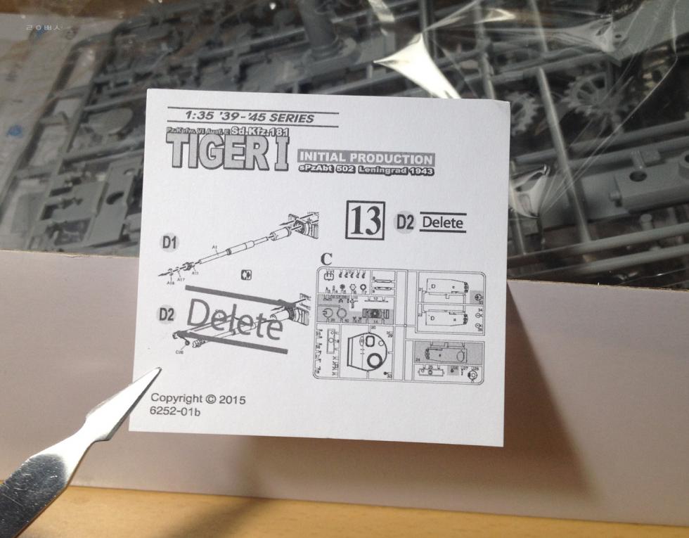 드래곤은 실차 조사를 했는지, 아래 부품을 사용하지 말 것을 지시하고 있습니다. 포방패 앞에 용접한 88포를 받치는 튜브형 장갑에 음각된 부분이 초기 생산형에도 있었다는 조사가 된 것으로 짐작합니다. 제가 달리 어디서 Tiger의 정보를 얻지 못할 때에는, 드래곤의 키트가 실차와 같을거라고 믿을 정도입니다. (너무 띄워주는건가?)