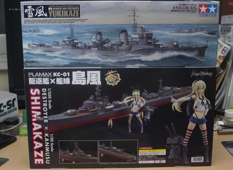 1/350 유키카제 박스랑 같이 놓아 봤습니다. 박스 폭은 비슷하지만 체적은 3배입니다. 이 킷트는 어디가 앞이야? 이거 참..