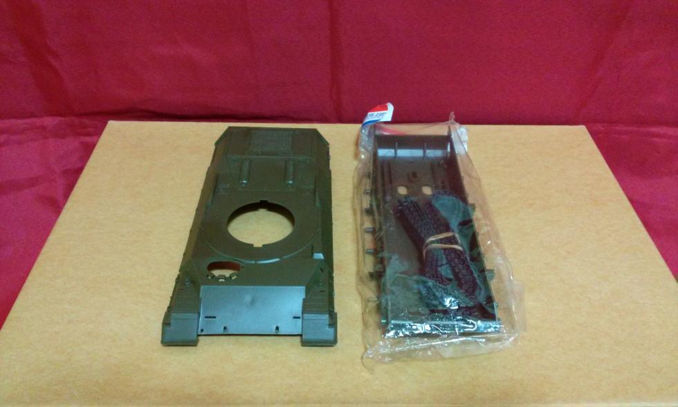 솔직히 레오파트 상부 헐은 좀 심심한 감이 있습니다. 모양이 단순해서 그런건데, 러너 색감이 그걸 어느 정도 만회하는 것 같습니다. 아마도 게파드 전차와 차체는 공용이 아닐까 하는 의문도 드는군요. 매우 비슷합니다. 하부 헐 이상 없고 궤도 또한 상태가 좋습니다.