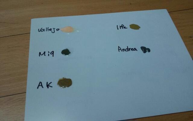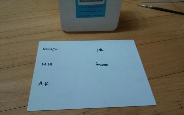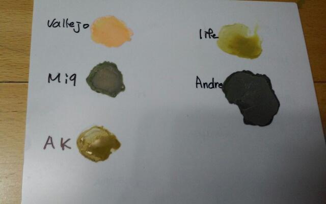 아래 써져있는 의미는 각 아크릴칼라 제조사명입니다 발레조, 미그,ak,라이프칼라, 안드레아칼라