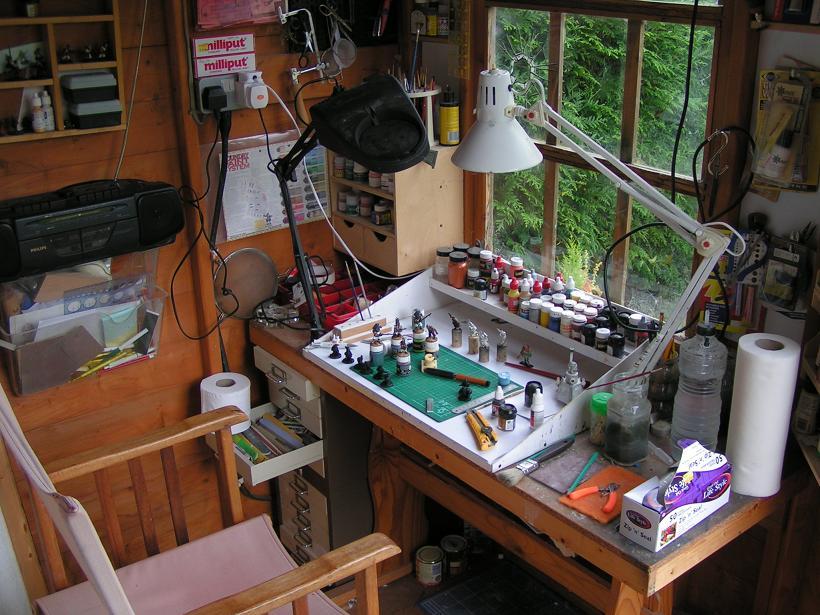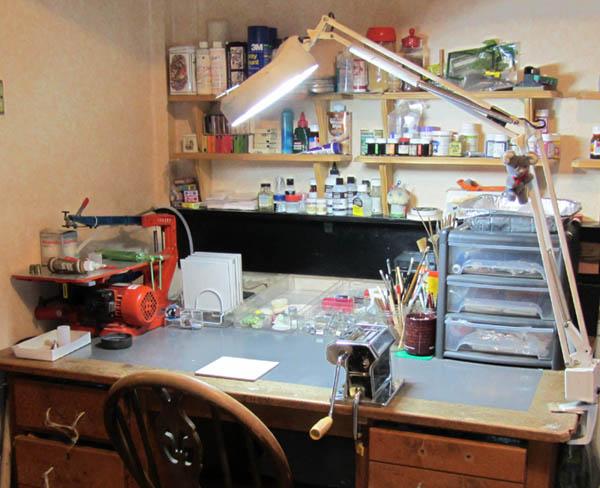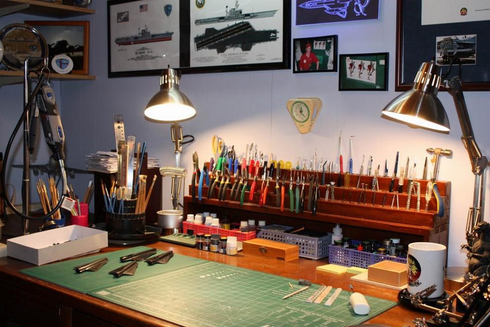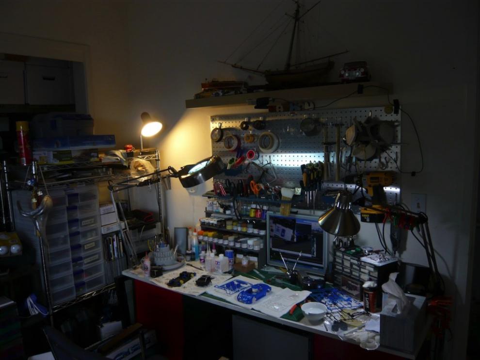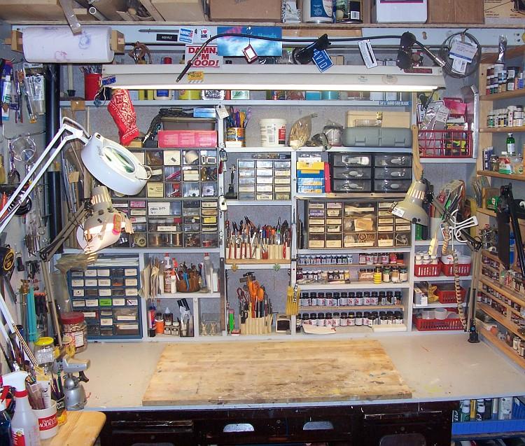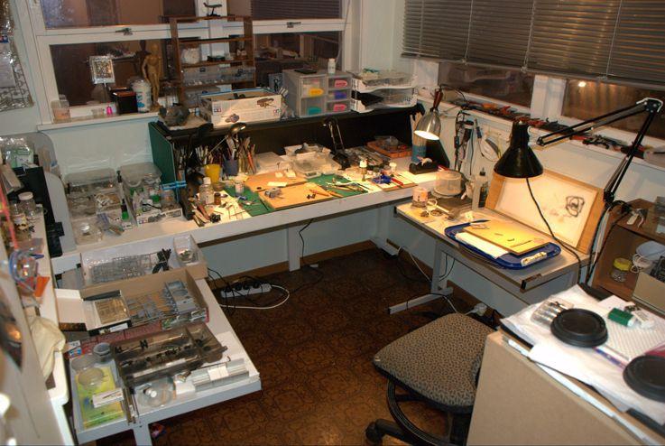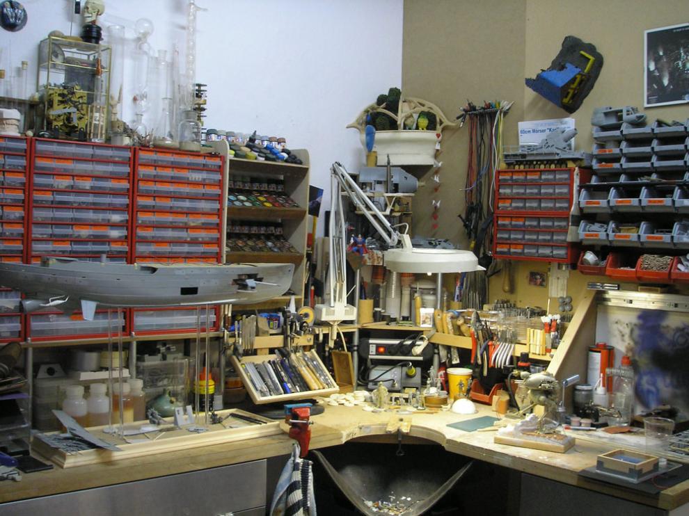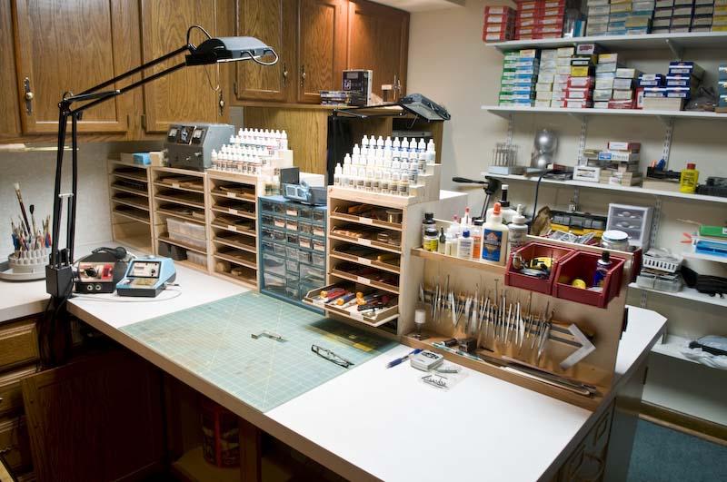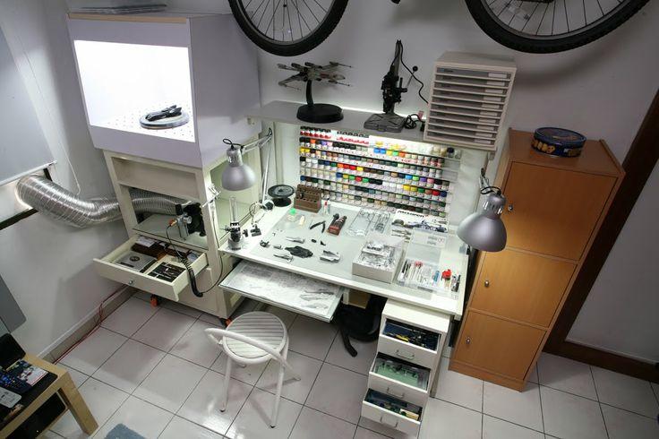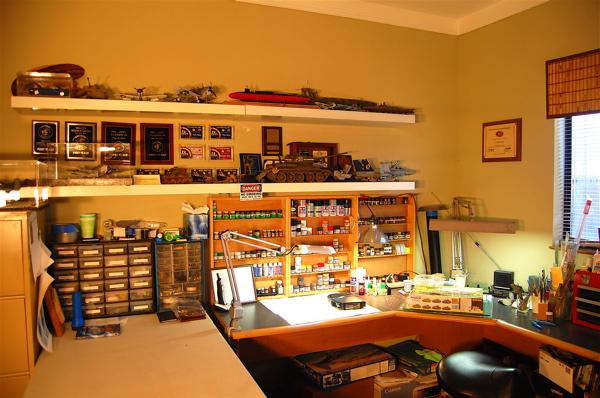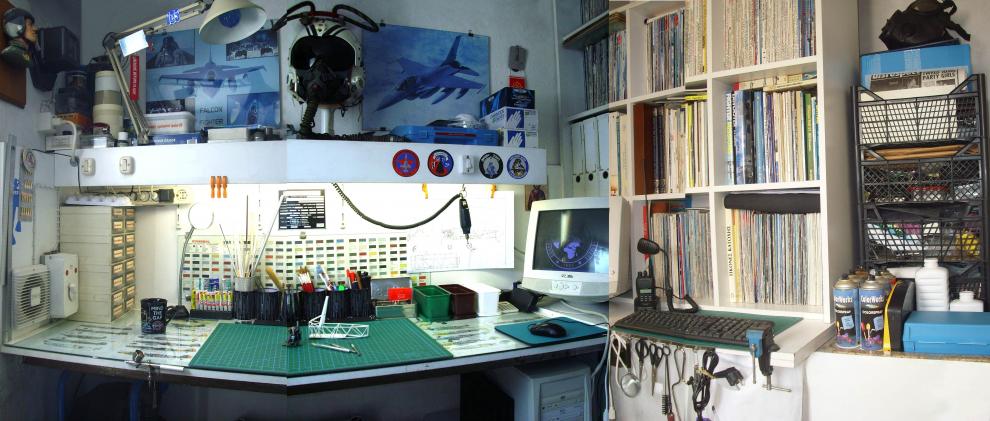 아래의 외국 모델러들의 작업실은 모두 청소가 깨끗이 이루어진상태에서 촬영된것이지, 실제 작업을 진행중인 상태에서는 온갖 먼지와 분진, 유해성 화학물질, 담배연기, 소음으로 뒤죽박죽이 되어 있을 것이기 때문이지요.