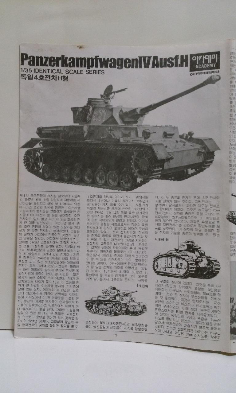 안녕하세요 엠엠지 회원 님들, 80년대 아카데미사에서 출시되었던 4호전차 H형에 대한 리뷰를 하려 모니터와 마주해 봅니다.