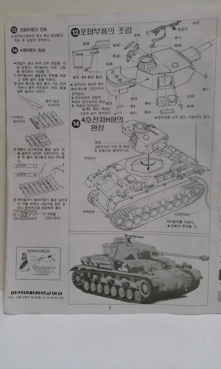 아카데미 4호전차 전후진은 타미야 원본을 그대로 카피한 것과 그것을 모사한 그림 두 종류가 있다는 증언을 들었는데, 위 제품은 카피한 것이 아닌가 합니다. 80년대 제품을 구득했을 때 드는 첫 즐거움은 바로 수준 높은 박스그림인데요, 그림 외 무언가가 담겨있다고 할 수 있을 정도로 깊이가 느겨지는 작품입니다.