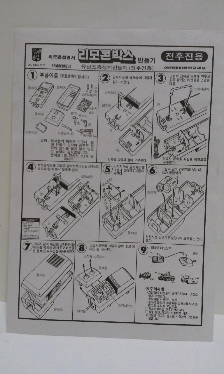 "스위치를 동시에 누르면 모터가 돌지않고 건전지만 소모됩니다". 이 문구를 당시 보았다면 조금은 쫄렸을듯 합니다. 왜냐하면 당시 주머니 사정상 건전지도 절약해야 했기 때문이거든요.