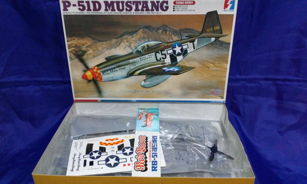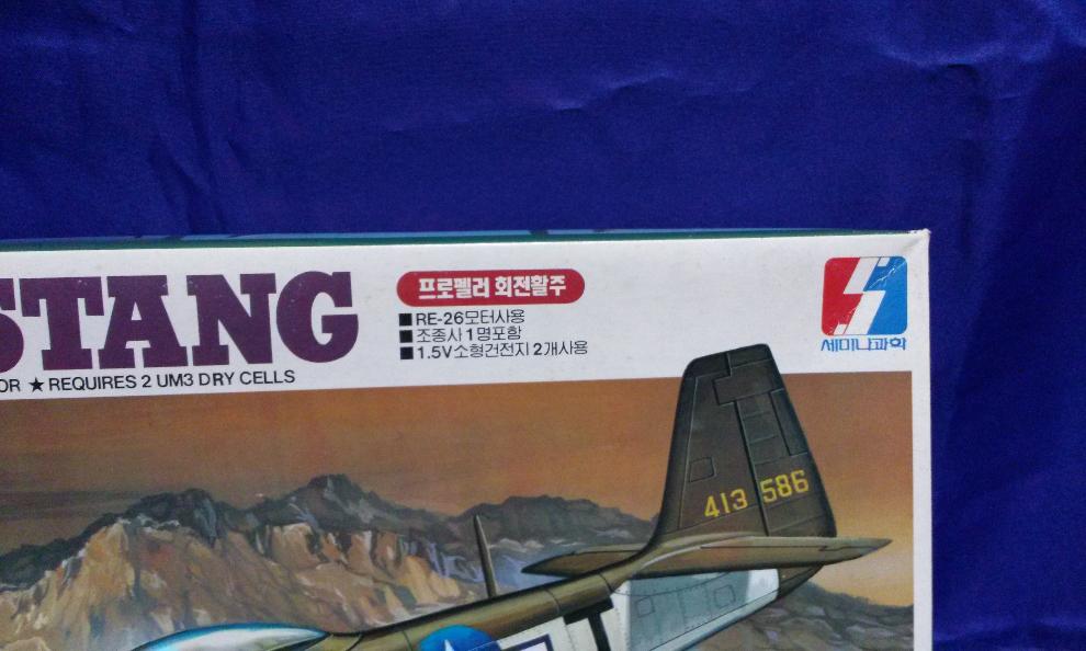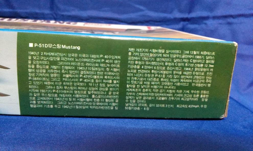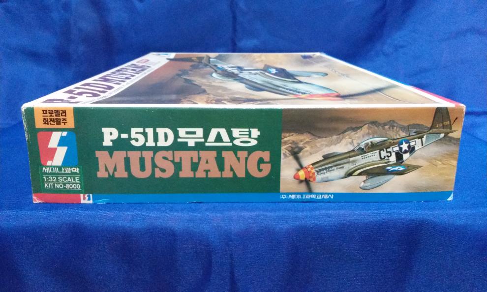 가격표가 있는 측면 모습입니다. 1/32 빅 스케일임을 잘 표시하였고, 품번 8,000으로서 8,000원에 출시한 제품으로 보입니다. 밀리터리 제품의 경우는 국방색의 사용이 없고 '밝은 노랑"으로 통일하였는데, 국방색 레이아웃이 무스탕에 사용된 점이 독특합니다.