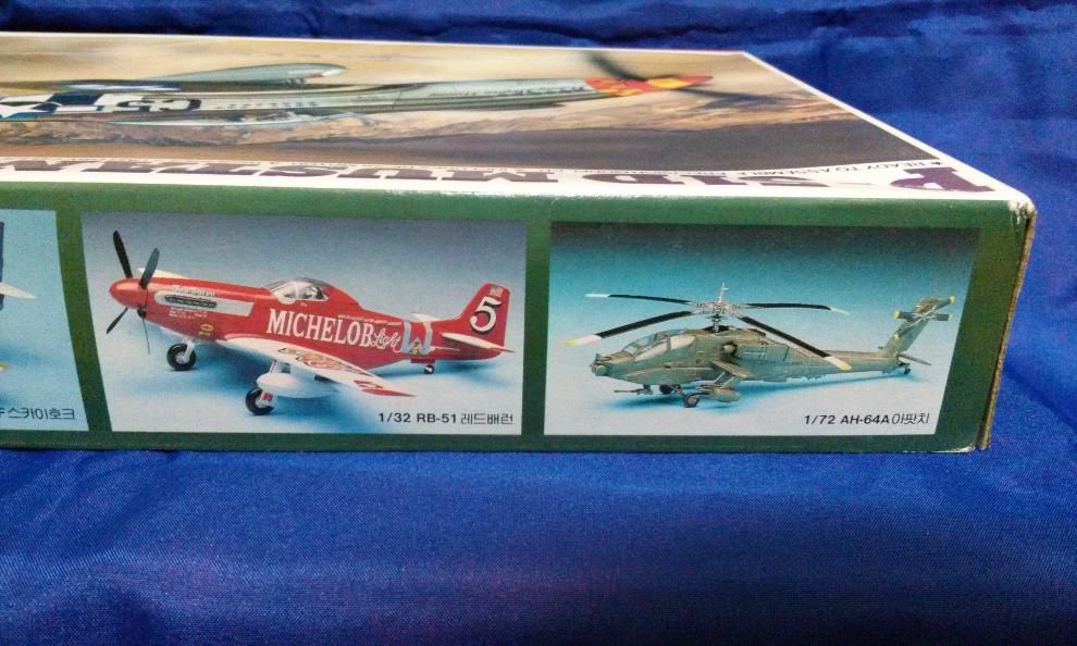 세미사사의 1/32 무스탕의 전면 박스그림입니다. 본 제품의 연혁은 아카데미사의 무스탕에서 시작하고 있습니다. 듣기로는 하세가와의 무스탕 그림을 모작하였다고 하였는데, 세미나는 독자적으로 무스탕을 그린 것으로 알고 있습니다.
