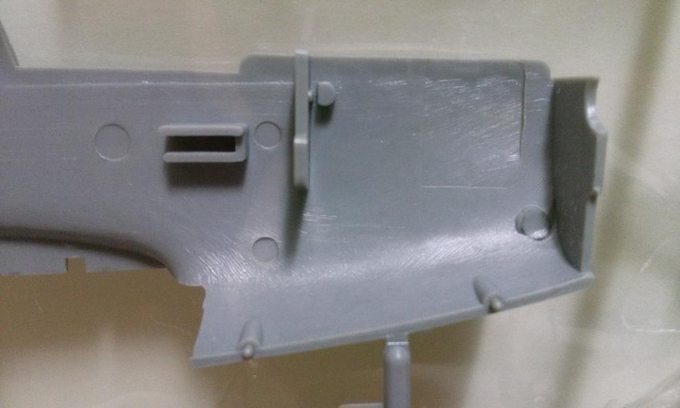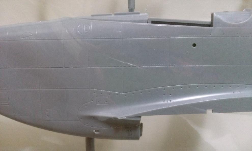 동체의 근접 모습입니다. 마이너스(-) 몰드와 리벳으로 보여집니다. 크기에 걸맞는 세세한 몰드는 아닌 것 같구요. 1/48 무스탕 혹은 72 스케일과 디테일에서 큰 차이는 없는게 아닌가 하군요.