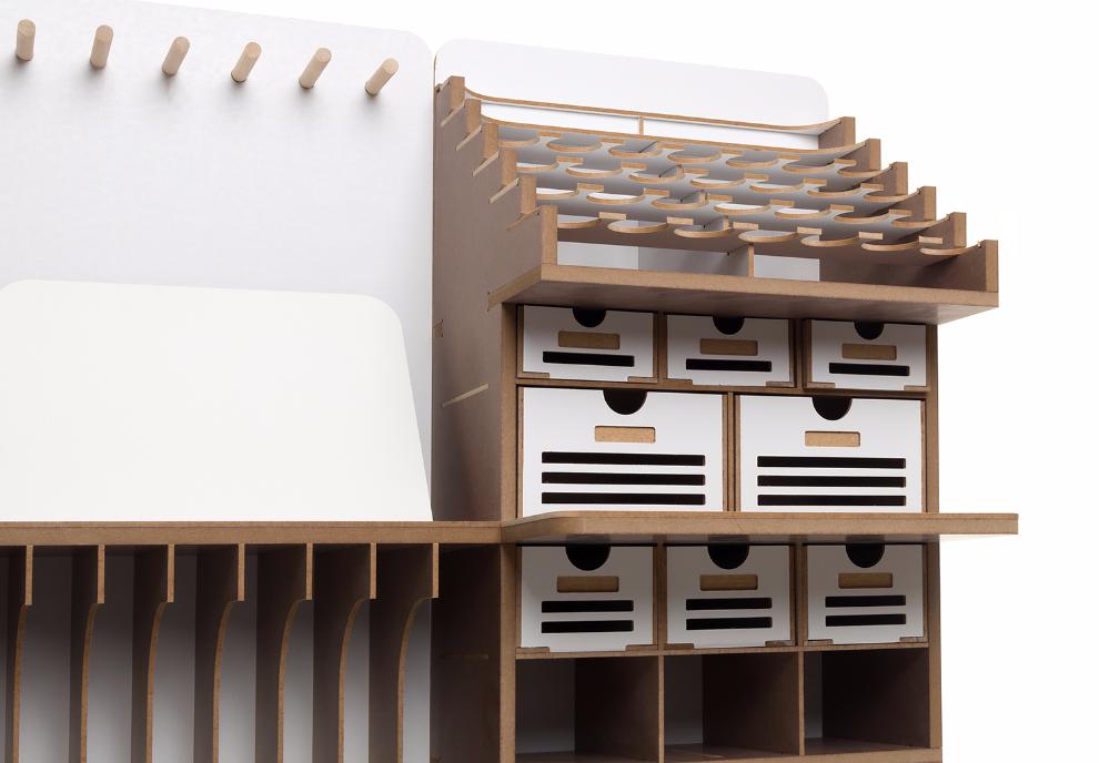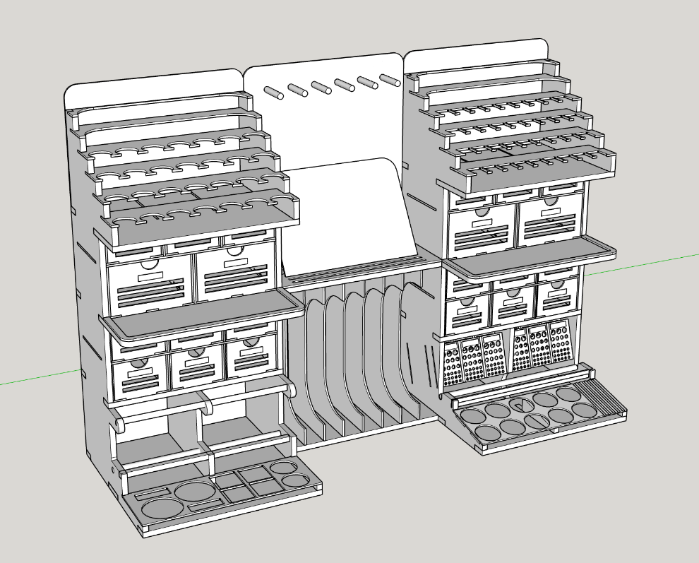 그리하여 약간의 개조를 거쳐서 상부에 범용수납공간 2열을 추가하여 총 6열로 제작하였습니다.