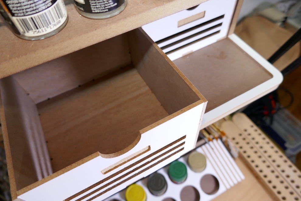 아티스테이션에는 상당히 많은 수납 공간이 있습니다. 부품이나 도구등을 깔끔하게 보관할 수 있겠네요.