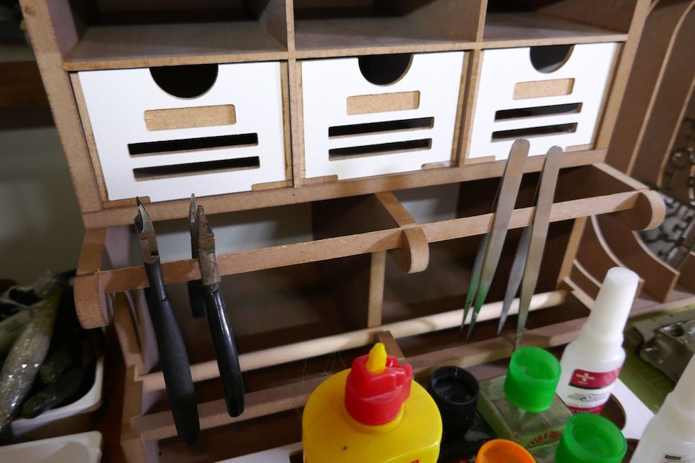 핀셋이나 니퍼 등의 도구는 이렇게 걸어 놓을 수 있군요.