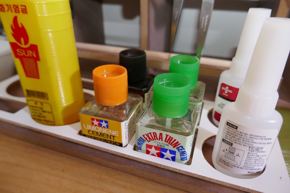 모델러라면 한번씩 쏟아 버린적이 있는 타미야 무수지 접착제 보관함입니다. 이거 정말 필요한 부분이죠.
