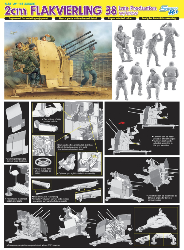 1/35 WWII German 2cm Flakvierling 38 Late Production w/Crew - Smart Kit